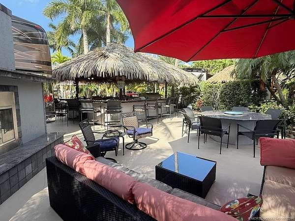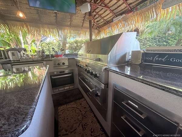 An Entertainer's Paradise - Truly One of a Kind! Welcome to a showcase property designed for those who love to entertain in style. At the heart of this extraordinary lot is a chef's dream kitchen, anchored by a stunning granite bar with seating for twelve and its own built-in TV. Every imaginable Viking appliance has been installed, including a commercial-size grill, EVO griddle, warming drawers, ice maker, dishwasher, and beverage center with built-in blender-there's even a clothes washer for added convenience. The outdoor living experience is just as exceptional. A built-in fireplace with stainless steel storage drawers and a granite-top fire table sets the scene for cozy evenings. Relax to the tranquil sounds of the waterfall koi pond and fountain, all while enjoying a serene lake view framed by a beautifully landscaped setting. This property is unmatched in design, quality, and setting-a rare opportunity for the most discerning buyer who desires the ultimate in a luxury lifestyle.