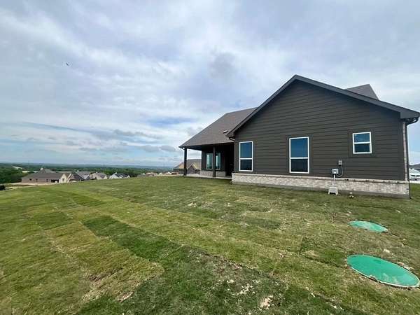 Estimated May 2026 completion! Ask us about our Trade In Trade Up program, we can buy your home! The Verbena floor plan features a modern, open-concept layout and the sought-after features today’s homeowners are searching for. With four bedrooms, three bathrooms, and a flex room, this plan boasts just over 2,400 square feet of functional living space. Upon entering the home off the front porch, you’re welcomed by an inviting foyer. Immediately to the left is a hallway with a bedroom, walk-in closet and full bathroom, as well as a linen closet. Across the foyer is a flex room, perfect for a home office, formal dining room or whatever need your family has for the space. Past the foyer is the family entry, with storage space and mud bench, which leads to the laundry room and two or three car attached garage. Through the entrance, the home opens up to a large family room with a stately fireplace. Adjacent to the family room is a gourmet kitchen, equipped with a walk-in pantry, ample counter space and an oversized island. Finishing off this open-concept living area is a dining space which overlooks the covered back patio. The remainder of this one-story floor plan is just off the living space. A hall leads to two bedrooms with walk-in closets, another linen closet and a shared full bathroom. The back corner of the home offers privacy for the owner’s suite, featuring a massive walk-in closet and bathroom with a dual-sink vanity, standalone soaking tub and glass-enclosed shower. Stunning interior homesite located on an acre in a serene, quiet community. Placed on the hilltop provides views and natural lighting. Open layout gives enough room to work, host and relax. This homesite boasts, a spacious yard and large covered patio to enjoy the scenery. MASONRY FIREPLACE, COVERED PATIO, FULL FOAM INSULATION, ENERGY STAR CERTIFIED BUILDER!