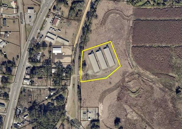 Only $425,000 ($11.81/sf) for these THREE metal warehouse buildings totaling 36,000 sf. Each building is 12,000 sf, 13 overhead doors, 2 personnel doors. Former "Aquaculture" (fish growing / farming) operation, now vacant. 3.2-acre lot has room for more buildings. Separate restroom building. Six large hopper bulk feed bins and three water tanks included, three generators to be removed by owner. Well & septic. Chain-link security fenced lot. Some original equipment, plumbing and piping remains. Floors are gravel/dirt mix; concrete under exterior walls. Good re-use property. Convert to self-storage or general purpose warehouse. Plat attached. Access is via Old Bemiss Rd then over abandoned RR tracks. Original R-1 zoning still in place, needs rezoning for new commercial use.