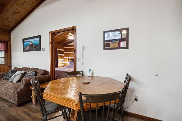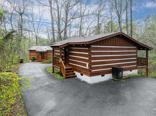 Incredible opportunity to own four income-producing log cabins tucked away in the popular Gatlinburg Arts and Crafts district! These cabins are nestled amidst mature hardwoods and colorful wildflowers, benefiting from the serenity of the Smokey Mountains. All units are beautifully maintained with new roofs, flooring, exterior stain, and fresh interior paint. Fantastic location near downtown Gatlinburg, Pigeon Forge, Dollywood, and other attractions. This is a great chance to own a money-producing portfolio, ideal for a 1031 Exchange, and is currently cash flowing. Cabin 4130 offers a spacious 1,486 sq ft layout with 2 bedrooms and 2 full baths. Take in the wildlife that pass through this woodsy, natural area from your covered front porch. A hot tub awaits to soothe sore muscles and melt away stress. Step inside where the great room is graced by a stone mantled fireplace to create a cozy place to relax and recharge. Beautifully detailed wood finishings add to the rustic, comfortable vibe found throughout. There is a ton of cabinet storage in the full kitchen and the full main floor bathroom is a treat with jetted soaking tub and separate walk-in shower. There is one bedroom on the main level as well as a second bedroom off the game loft with its own ensuite bathroom featuring a walk-in shower. Cabin 4110 is a serene 876 sq ft residence with 1 bedroom and 1.5 bathrooms. This cabin's generous open concept floor plan is highlighted by an abundance of natural light creating a warm and inviting glow throughout. The living room fireplace enhances this quaint setting, and the full kitchen yields a nice cooking space with dining area to sit down for meals. Just off from the kitchen is a jacuzzi tub and around the corner is the full bath with tub/shower combo. Head up to the loft and there is a half bath convenient to those enjoying the game room amenities. The rear deck is the place to be to take in the serenity of this private, wooded location with hot tub to cap off (or begin) each day. The newer HVAC is only about 2-3 years young, enhancing the longevity of this gorgeous cabin. Cabin 4108 is a 1 bedroom, 1 bath of 596 sq ft. As you step inside, you'll be greeted by the warm and cozy ambiance that only a cabin in the woods can provide. The updated flooring and fresh paint add a touch of modernity while still maintaining its alluring authentic charm. The vaulted open layout with living room fireplace will inspire you to gather with your loved one on chilly nights, creating memories that will last a lifetime and the full kitchen ads to the convenience whether preparing a meal or movie night snack. The bedroom features an in-room jetted soaking tub as well as a full ensuite bathroom with tub/shower combo. Be sure to check out the hot tub deck where the wooded setting invites great wildlife sightings. Cabin 4106 is another 1 bedroom, 1 bathroom cabin of 596 sq ft. The vaulted great room layout is a beautiful complement to its mountainside location with its abundance of natural lighting and lovely focal point fireplace. The bedroom is perfectly prepared for romantic getaways with in-room jetted soaking tub and full ensuite bath with tub/shower combo. One of the highlights of these properties is undoubtedly the tranquil views from the decks. Imagine sipping your morning coffee or enjoying the twilight hour while being surrounded by nature's beauty. This cabin's hot tub will leave you feeling rejuvenated each and every day. Buyer to verify all information. Drone photography used.