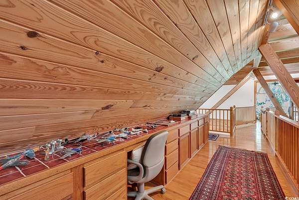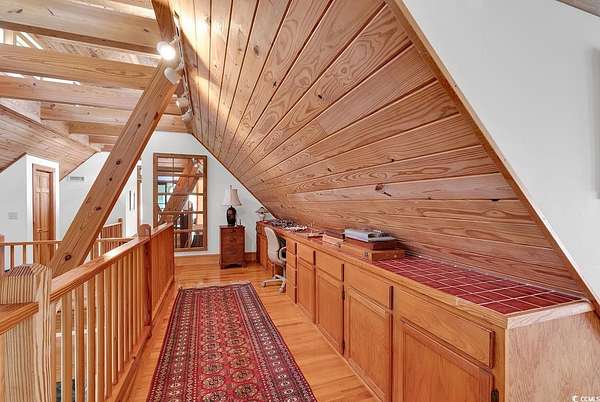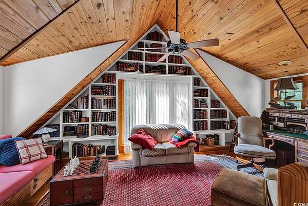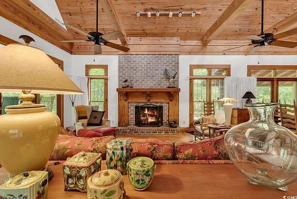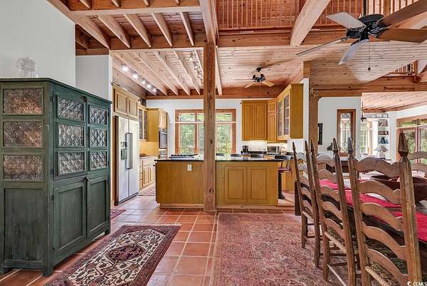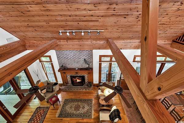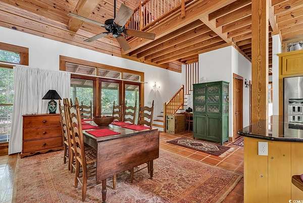 Welcome to this 4+ acreage unique waterfront home! Nestled along the serene river front of Gunter Lake and accessible Little Pee Dee river. This exquisite property presents an unparalleled opportunity for those seeking the epitome of lake or river living. Crafted with meticulous attention to detail, this custom built home exudes quality and offers a tranquil retreat for both permanent residency and leisurely getaways. Step onto the large screened porch and three tiered deck where the gentle lapping of the water sets a soothing ambiance perfect for relaxation or entertaining guests. A stationary dock extends invitingly to the water providing access for boating, fishing, or simply basking in the beauty of the surroundings. For those with a green thumb, a greenhouse awaits to indulge your passion for gardening, while a detached custom-built workshop/barn offers ample space for hobbies or storage needs. Inside, the home boasts a chef's dream kitchen, featuring top-of-the-line stainless steel appliances including double ovens, electric range top, and a Viking 6-burner gas range top. Custom wood-beamed ceilings adorn the living spaces adding warmth and character to every room. With separate study and an art room that could easily serve as a third bedroom, this versatile property caters to a variety of lifestyles and needs. Experience the allure of this unique home and property firsthand.