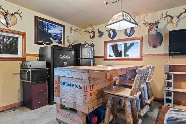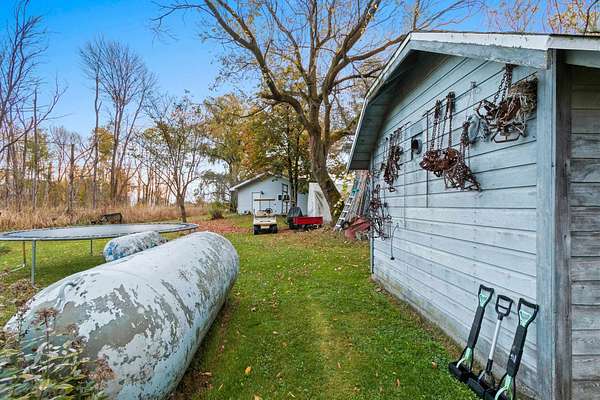 Charming brick home on nearly 4 acres with 179' of Bay frontage directly across from Little Tail Point. This inviting property offers privacy, mature trees, and abundant wildlife. Features include an ice house, workshop, and a 2-car detached garage with finished rec room. The home offers four bedrooms, a bright updated kitchen with dining nook, a mud room, and a remodeled bathroom. Outdoor highlights include a dock and picnic area near the water, perfect for relaxing or entertaining. Located in the Howard-Suamico School District, this property blends peaceful waterfront living with convenient access to local amenities. Recent updates include landscaping, water filtration system, roof, and new septic. See associated documents for additional updates.