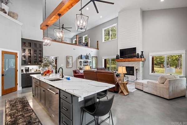 WOW ..... WELL DESIGNED BARNDOMINIUM THAT STATES QUALITY AND DESIGNED FOR COMFORT.... Amenities Include: Approximately 2542 Square Feet, 2 Bedrooms, 3 Bathrooms, Living / Dining Combo, Kitchen / Dining Combo, Breakfast Bar, Large Kitchen Island, Pantry, Abundance of Cabinets and Chef's Kitchen ( Wall Oven, Microwave, Drop in Gas Range ), Spacious Living Room with Gas Log Fireplace, Large Primary Bedroom with Large Walk-in Closet, Primary Bathroom with Custom Tile Shower and Free Standing Tub, Upstairs boasts bedroom with Walk-in Closet and Full Bathroom, Loft Area that overlooks the downstairs, 59' x 60' foot shop area with 2 - 12' wide x 14' tall garage doors and 1 - 10' wide x 10' tall garage door, Large Wrap around Sitting Porch/Patio with wood burning fireplace, entire Barndominium is spray foam insulation, all sitting on a private Tree Shaded 3.79 acre lot +/-. And Much More... A Must See..