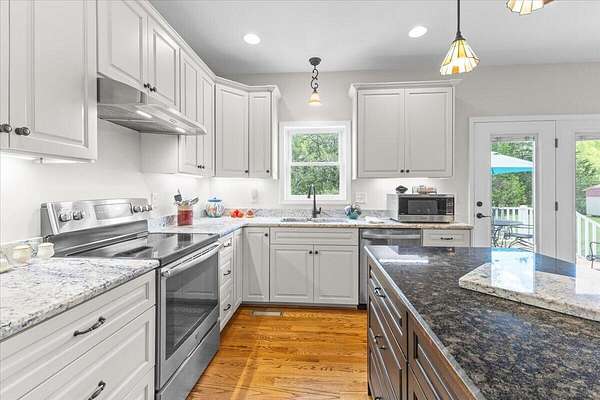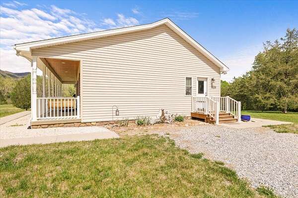 Discover the perfect blend of modern comfort and peaceful country living with this beautifully maintained home built in 2019. Offering 3 bedrooms and 2 bathrooms, this one-level home features an open floor plan that creates a spacious and inviting atmosphere, ideal for both everyday living and entertaining. Situated on an impressive 42 acres w/ a creek & 15 mature fenced blueberry bushes the property provides endless opportunities for outdoor enjoyment, recreation, or future expansion. Step outside to relax on the deck overlooking the scenic surroundings, and take advantage of the two sheds for additional storage or workspace. Inside, you'll appreciate the modern fixtures and move-in ready condition, making this home an easy choice for its next owner. If you've been searching for privacy, space, and a newer home with all the right features, this one is a must-see!