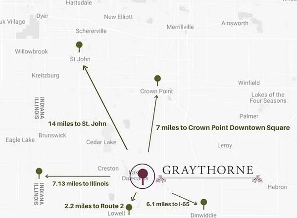 Welcome to GRAYTHORNE Northwest Indiana's Premier Gated Community Introducing Lot 36, a fully wooded homesite offering rare privacy and natural beauty. This lot backs directly to a scenic outlot and protected wetland, ensuring no rear neighbors ever. Build your custom dream home with the builder of your choice or explore stunning designs from our preferred builders. Enjoy the safety and serenity of a gated community with low POA dues and covenants designed to protect your investment. Graythorne combines the charm of a rural setting with the sophistication of luxury living, showcasing architectural styles like Modern Farmhouse, Craftsman, French Tudor, Rustic Italian, and Old World European. Minimum Build Requirements: 2,100 sq. ft. Ranch 2,700 sq. ft. Two Story With city sewer, low property taxes, and newly available AT&T Fiberoptic internet, Graythorne offers a perfect balance of modern convenience and timeless appeal. Ideally located just minutes from Crown Point, Cedar Lake, downtown Lowell, I-65, Route 41, IN-2, and the Illinois state line you're close to everything yet surrounded by peace. Lot 36 at Graythorne isn't just land it's a lifestyle.