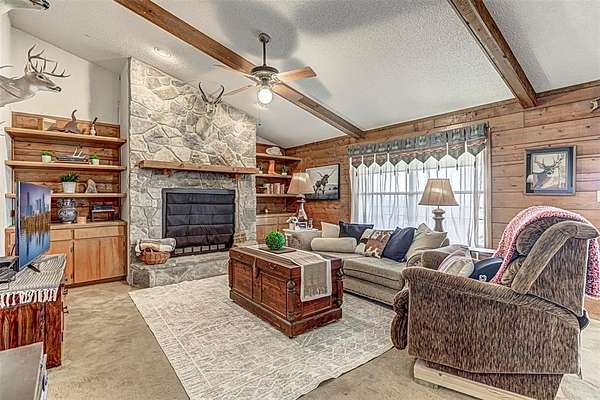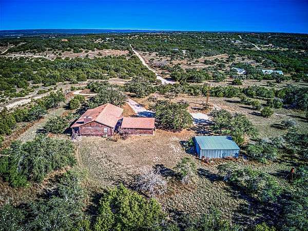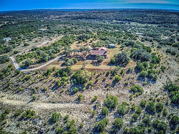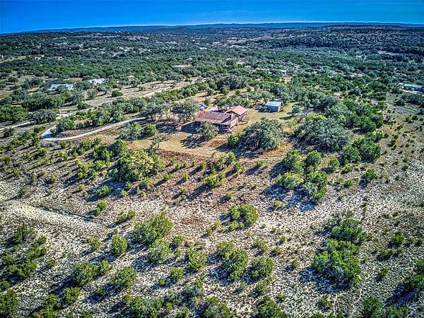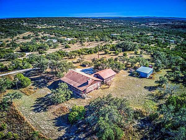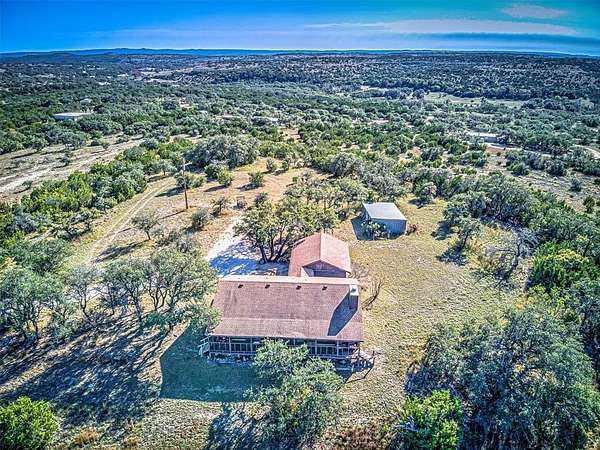 AUSTIN HILL COUNTRY LEGACY RANCH UNRESTRICTED 19.15 ACRES with LIVE WATER. NEWLY COMBINED AND PRICED AT $2,000,000. This is a generational opportunity to own 19.15 fully unrestricted acres situated across two counties (Burnet and Blanco), offering ultimate privacy and self-sufficiency just minutes from Spicewood and Austin. The price is firmly aligned with the unique, high-value features this property delivers. UNBEATABLE VALUE PROPOSITION: ZERO Restrictions. No HOA, no zoning. Build the custom estate or establish the Ag Exemption of your dreams (buyer action required upon closing). Natural Riches Included. Features a rare Natural Spring-fed Pond and Half of the Mineral Rights will convey, providing valuable water resources and significant long-term potential. Convenience Advantage. Located atop a private hill at 414 Hall Lane, this retreat offers seclusion while maintaining easy access to Highway 71 and the thriving city of Austin. TURNKEY HOME & UPGRADED SYSTEMS: Charming 1,467 SF log home (3-bed,2-bath) with a cozy wood-burning fireplace equipped with an electric fan. Enjoy serene Hill Country views from the full-length covered porch (350 SF). Includes an attached 2-car garage (616 SF) with a 2-car paved drive, a covered breezeway (84 SF), and a 200 SF insulated workshop with utilities and heat lamps. System Certainty: Recent upgrades include a New HVAC system and New water well equipment (new pipes, bladder,compressor, and impeller) eliminating immediate capital expense for the buyer. LAND & RANCH DETAILS (19.15 Total Acres): Majestic Live Oak trees, gravel road access, and partial perimeter fencing (approximately two-thirds to three-quarters complete). Wildlife includes one deer stand with timed feeders and two game cameras, appealing to recreational buyers.