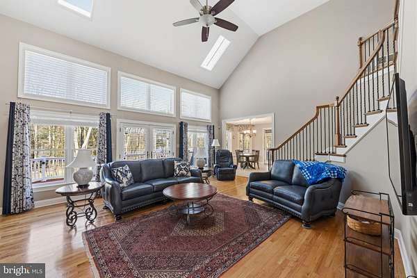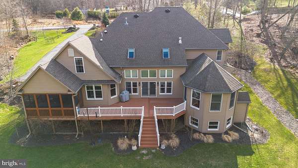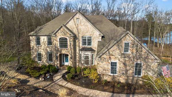 This exceptional stone and brick lakefront home offers the perfect blend of peaceful retreat and convenient access, located just 2 hours from both Philadelphia and New York City, making it an ideal full-time residence or luxurious weekend escape. Nestled in a tranquil setting in the highly desirable Ice Lakes community, this classic brick lake house captures the beauty of nature with breathtaking lake views and the soothing sound of a charming babbling stream that runs along the property. The stream offers the unique opportunity to launch kayaks, canoes or small boats directly into the lake, creating an unmatched connection to the outdoors. Inside, the home is filled with natural light and showcases gorgeous hardwood floors throughout, enhancing the warm and inviting atmosphere. The thoughtfully designed layout features two primary suites - one on the main level with stunning lake views, and a second upstairs providing privacy and flexibility for guests or multi-generational living. The dramatic two-story family room showcases spectacular lake views and is anchored by a beautiful stone hearth gas fireplace. A second gas fireplace creates an elegant focal point in the music room, also perfectly suited as a formal living room. The spacious kitchen is designed for both everyday living and entertaining, featuring an oversized island, upgraded cabinetry, charming window seats, and a butler's pantry. Formal living and dining rooms provide wonderful gathering spaces, while the cozy screened porch offers peaceful lake views - perfect for morning coffee or relaxing evenings. The finished daylight basement has access to the yard, adds valuable living space and is already framed for a fifth bedroom and plumbed for a full bath, offering excellent potential for guests, a home office, gym, or recreation area. Additional highlights include a three-car garage and a large deck ideal for entertaining or simply enjoying the tranquil surroundings. Whether you are seeking a serene primary residence or the perfect vacation getaway, this extraordinary lakefront home offers the rare combination of luxury, comfort, and convenience - all within easy reach of Philadelphia and New York City.