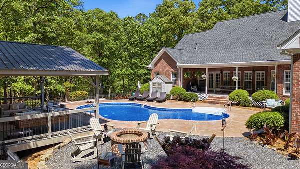 Private 13-Acre Equestrian Estate - Luxury Hobby Farm Retreat Within Easy Reach of Atlanta and Macon Welcome to 414 Parker Branch Road, a rare opportunity to own a fully functional luxury hobby farm where refined living meets wide-open Georgia dreams. Situated on 12.95 acres of fenced and cross-fenced pasture, this estate is already home to horses, a donkey, goats, and even peacocks - bring your animals and step straight into your dream working farm. Five established pastures, all with healthy grass and natural shade including one fully wooded pasture, are thoughtfully laid out and beautifully maintained with stunning spring and summer foliage. The land is ideal for equestrian or small-farm living. Barns, Buildings & Land Features: 4-stall horse barn with tack room - classic country red with power, water, and internet capability. RV/boat garage with two oversized doors, 44 ft deep with power. Implement shed for equipment, feed, or storage. Fully fenced and cross-fenced with a creek running through the property. Drilled well with upgraded water filter system and pressure tank. New roof, gated drive, and five pastures all with shade and excellent grass. Interior Highlights: Expansive entertainer's kitchen with granite countertops, abundant cabinetry, and generous workspace. Stone fireplace in the living room. Three bedrooms on the main level with a split-bedroom design. Large owner's suite with soaking tub and dual walk-in closets. Spacious secondary bedrooms, plantation shutters, and a separate home office or library. Two water heaters and three HVAC units. Upper Level: Private bedroom with attached bath, large family room, and a flex room perfect for an additional bedroom, media room, or playroom. Large laundry room with stairs leading to a partially finished bonus room already wired, ducted, and sheetrocked - an easy finish for additional square footage. Basement & Storage: Exterior access with garage door entry, multiple rooms for storage, workshop space, or future expansion. Partially finished bathroom with shower and toilet already in place - perfect as a dog washing station or for cleaning up after a day in the fields. Backyard Oasis: Covered back porch overlooking the saltwater pool with new liner. Stunning pool deck, fire pit, and charming gazebo - your private retreat after a long day. From sunrise pasture walks to evenings by the fire pit, this estate offers a lifestyle that simply cannot be replicated. 414 Parker Branch Road is more than a house - it's 12.95 acres of farm dreams, luxury comfort, and that "home" feeling. Adjacent property, 408 Parker Branch, also available, offering a rare opportunity to create a private family compound!