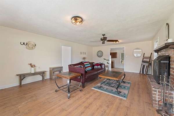 Inside, you'll find 2 spacious bedrooms and 2 full bathrooms, plus a versatile office that could easily serve as a third bedroom (no door currently installed). The cozy living room features a wood-burning fireplace, and a large walk-in pantry adds practical storage space. The kitchen retains its original style and awaits your personal touch, while much of the rest of the home has been thoughtfully remodeled.