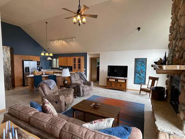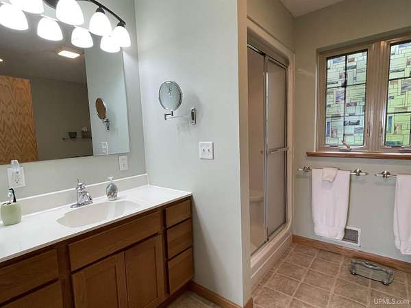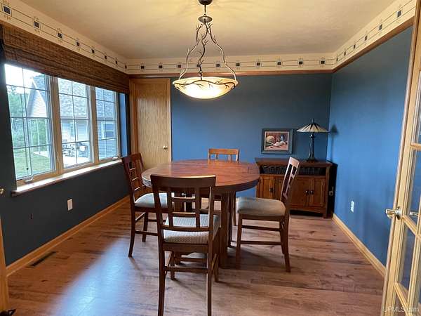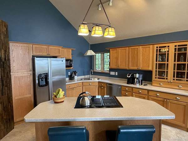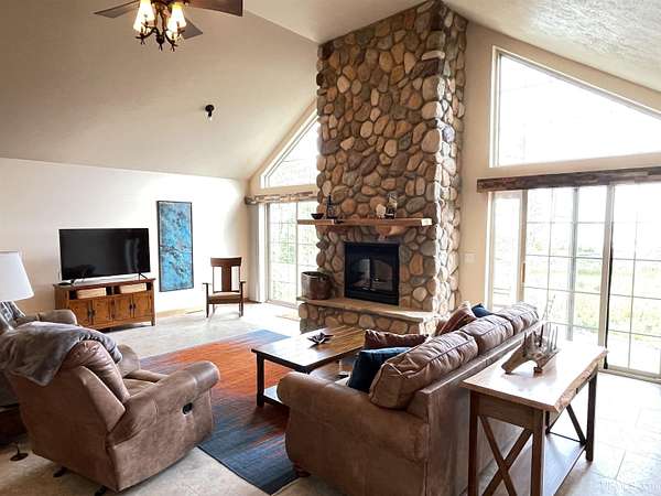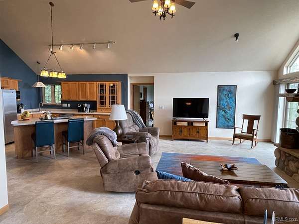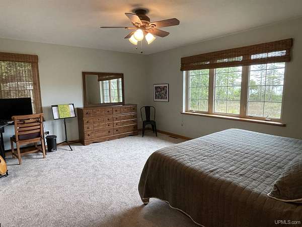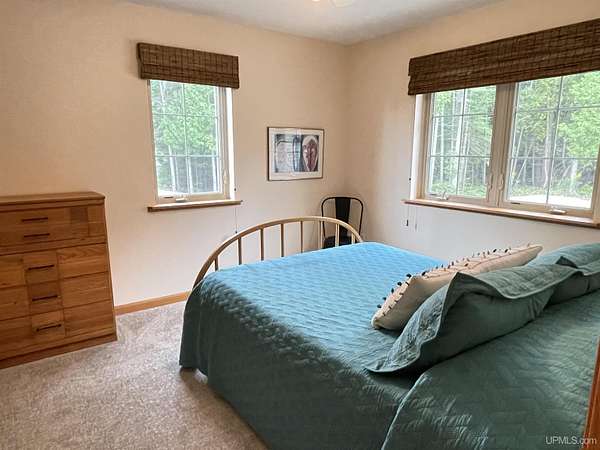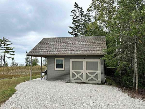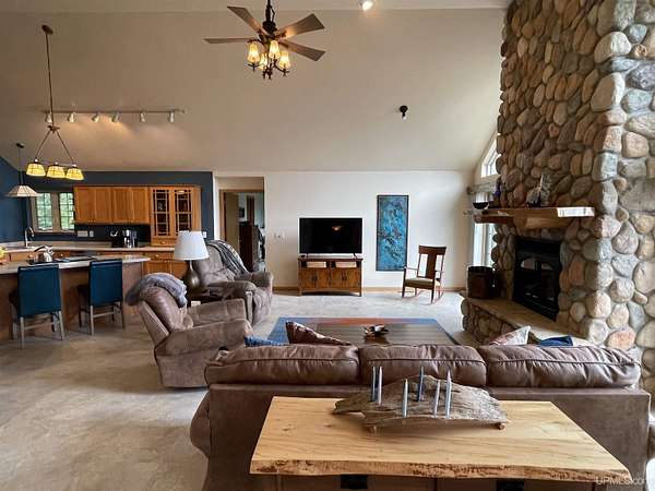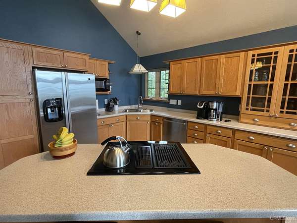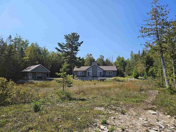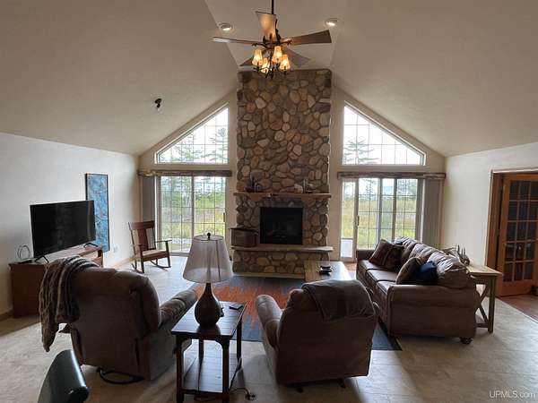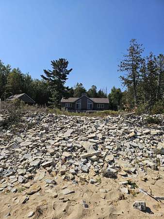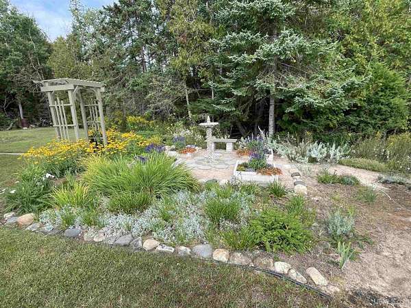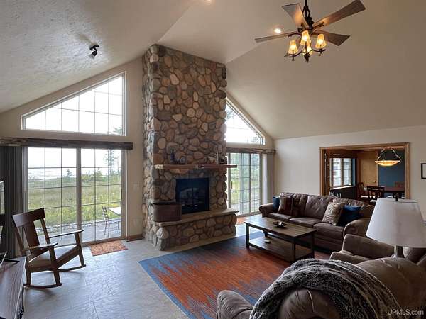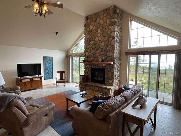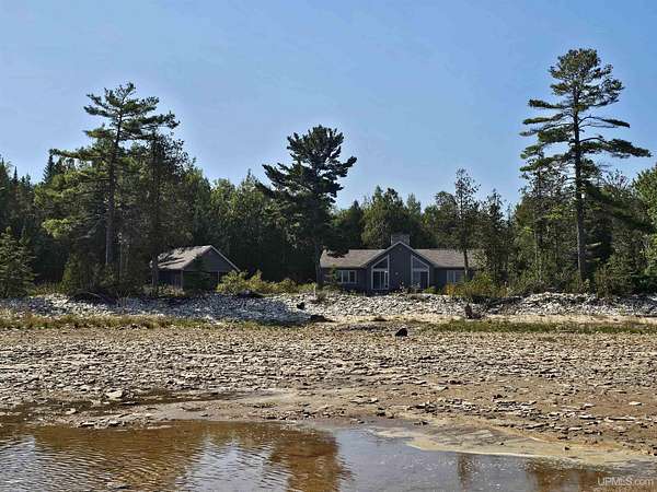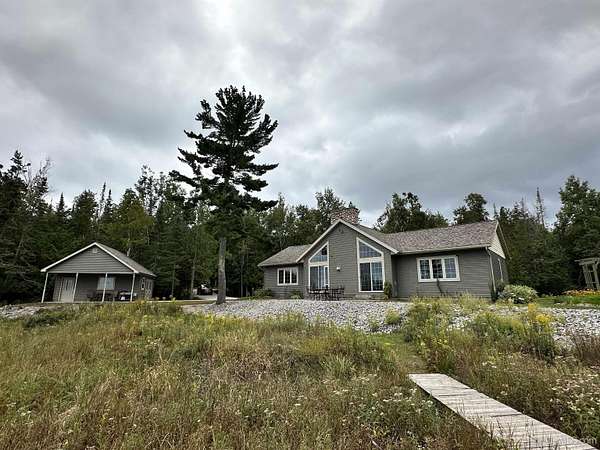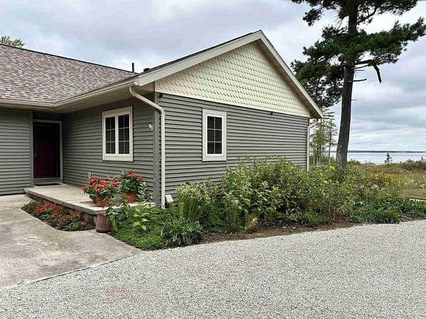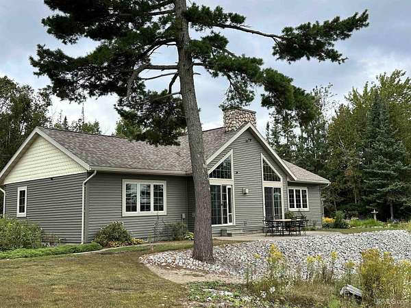 The tranquility of Lakefront living is within reach with this well-maintained ranch-style home that sits on nearly 2 wooded acres with 261 feet of frontage along Lake Michigan's north shore, offering privacy, security, and gorgeous sunrise views over the Manistique Harbor and Lighthouse. Step outside to discover a hidden English Garden--your own private nook for reading, painting, or simply soaking in the peaceful atmosphere. Inside, the spacious great room is the heart of the home, with a floor-to-ceiling stone gas fireplace and sweeping water views. The kitchen is will appointed with oak cabinetry with pullouts, stainless steel appliances, a Jenn Aire cooktop with grill, and a large island with seating for four. With 2 bedrooms, 2 full baths, plus a den that could convert to a 3rd bedroom, the home offers flexibility for family or guests. The primary suite boasts a large walk-in closet, whirlpool tub, and separate shower. Additional amenities include a finished 2-car attached garage with attic storage, plus a 19' x 22' detached utility garage with workshop and covered porch. Many recent updates--quality flooring, 2021 roof, hot water heaters, and more--add peace of mind. Conveniently located near the new hospital, Stoney Point Golf Course, and just minutes from downtown shopping and dining, this property offers the perfect blend of comfort, charm, and convenience on Lake Michigan.