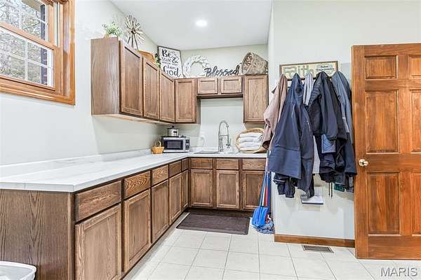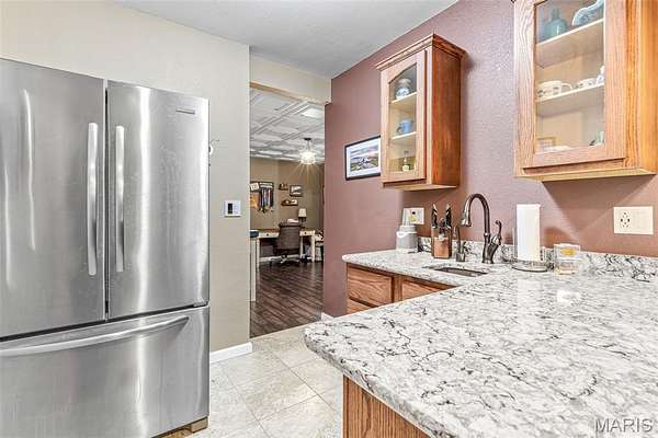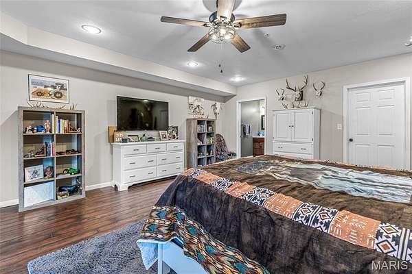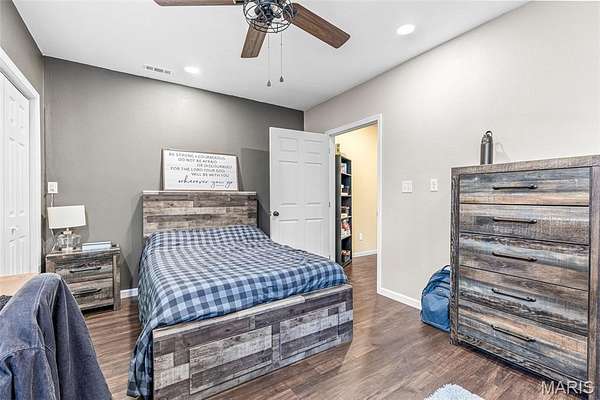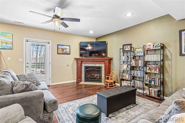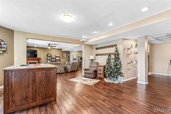 The walkout basement is meticulously finished and offers incredible versatility, featuring luxury vinyl flooring, a stylish bar area, large family room, office, sitting area, two full bathrooms, and a spacious bedroom that could easily serve as a second master suite. An additional sleeping area with a window and a lower-level garage/shop add even more functionality.