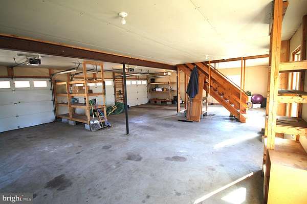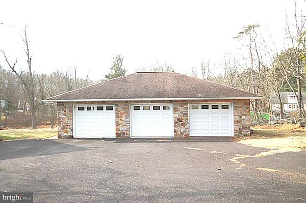 Here is your chance to own a 4-bedroom, 2 Bath stone front rancher, oversized 3 car Detached garage on almost 2 acres. Public water and sewer with an amazing lot backing to a small stream. As you enter, flanked to the right is a large Great room that houses your living rm and also dining area. The living rm includes a large built-in oak entertainment unit which will house your tv and other items of your choice. Plenty of sunlight in this area and includes recessed lighting, wood stove, ceiling fan, 2 closets and a door leading to a large 12' x 40' 2-tiered deck overlooking your beautiful yard. Next is your galley kitchen with oak cabinets, stainless steel appliances and an opening that will allow you to access your dinette area. The dinette includes a ceiling fan and sliding door that leads you back out to the deck. Up the hallway you find the hall bath and the four bedrooms. The fourth bedroom was used as an office/laundry rm and can easily be converted back to a bedroom. Heading down to the lower level you will see the second Bathroom, plenty of recessed lighting, 2nd laundry area, large brick wood burning fireplace and a door that provides you access to the unbelievable back yard that backs to a small stream. Walking back to the front of the house, you will see the huge 30' x 40' oversized 3 car garage with a walk-up attic for additional storage. You will also notice the expansive parking area for all of your guests. New Heater & AC unit in 2024, water heater in 2021. The location of this home is incredible, and you will not be disappointed so hurry and schedule your visit.