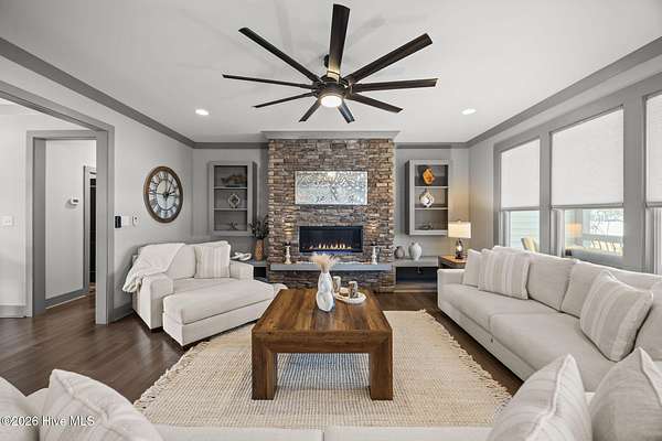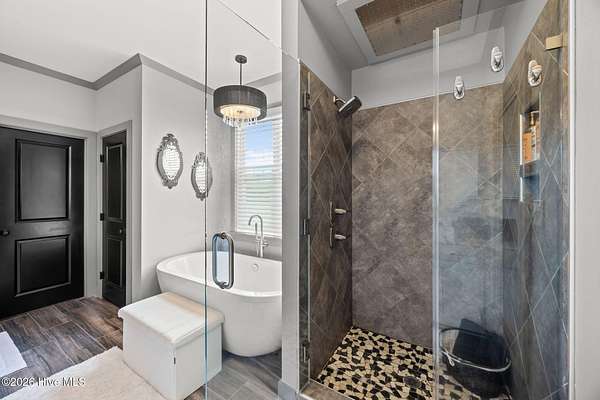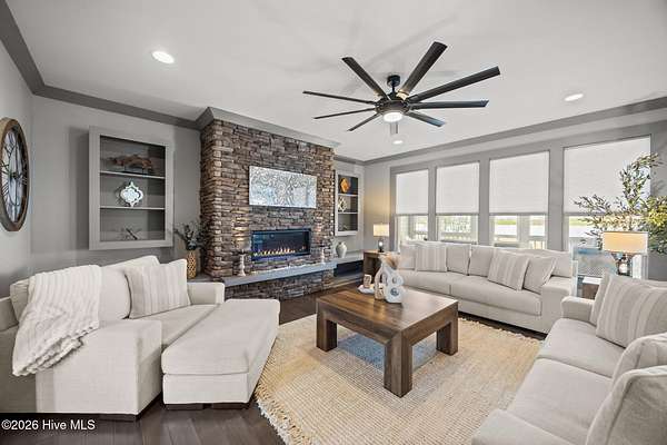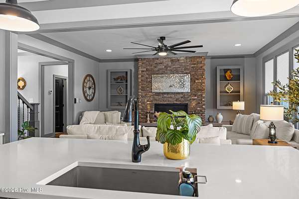 - Blinds/Shades, Bookcases, Ceiling Fan(s), Eat-In Kitchen, High Ceilings, Kitchen Island, Master Downstairs, Solid Surface, Walk-In Closet(s), Walk-In Shower