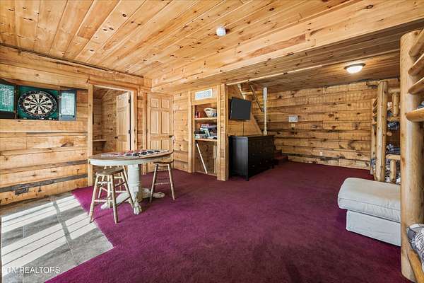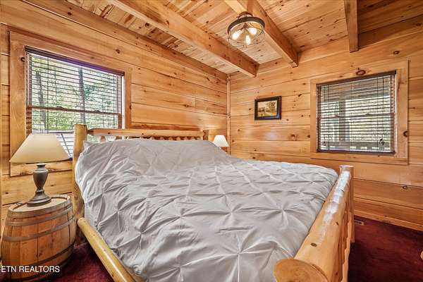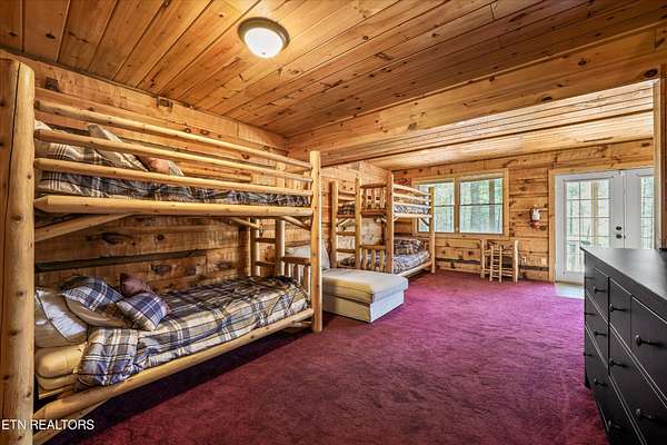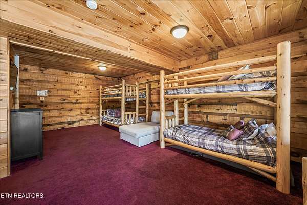 The lower level is built with fun in mind and perfectly suited for kids or group stays, featuring two sets of bunk beds, a full bathroom, and ample space to add games, arcade systems, or pool table area to further boost rental appeal.