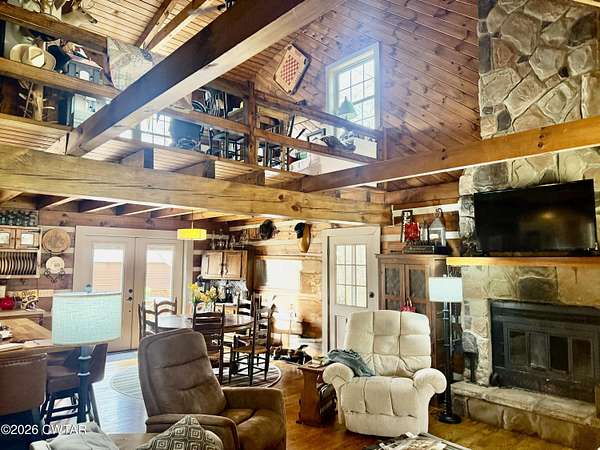 Est $2,705/moEscape to your own private retreat! This stunning 1.5 story log home sits on nearly 16 acres of beautiful wooded land and offers the perfect blend of comfort, nature and privacy. Open floor concept, gorgeous wood ceilings and floors, stunning stone FP, spacious kitchen with appliances, and Master suite with walk in closet. Scenic pond, full length front porch, large back deck for entertaining, 3 car carport and storage building. Metal roof and new Therma-Tilt windows. This one is truly a rare find with breathtaking views and peaceful surroundings - a Must See!
