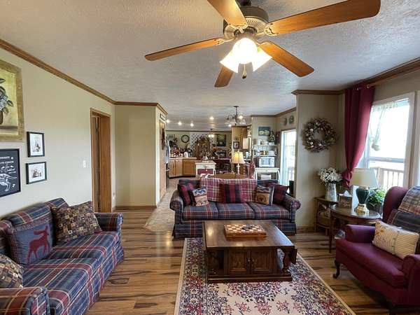 10 Rolling Acres 4BR Home Finished 30x40 Shop10 usable rolling acres with beautiful sunrise views, a spacious 4-bedroom home, and a finished 30x40 shop--plus you're just minutes to Table Rock Lake.This 2,280 sq ft home offers 4 bedrooms, 2 baths, walk-in closets, and a large bonus room adjoining the master bedroom, perfect for a home office or private retreat.The open floor plan flows from the kitchen into the formal living room, while a cozy family room with a wood-burning fireplace provides the perfect place to relax.The standout feature is the fully finished 30x40 shop with epoxy floors, spray foam insulation, finished walls, heat and air, and an insulated overhead door. Currently staged for podcast recording, this unique space could easily become an incredible workshop, studio, business space, or ultimate hobby retreat.Recent updates include: New exterior siding with Tyvek wrap & new windows (2024) Seamless gutters New dishwasher & refrigerator New pressure tank* Fenced front and back yardsEnjoy peaceful country living while still being minutes to Table Rock Lake, 30 minutes to Branson, and 40 minutes to Springfield.Start your mornings on the back porch watching stunning sunrises over the rolling countryside.Properties with usable acreage, sunrise views, and a finished shop like this rarely come available--schedule your showing and experience it for yourself.and experience it for yourself.
