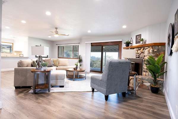 41443 Roaring River Ct is on 1.63 acres with sweeping mountain views in Yosemite Lakes Park ust 40 minutes south of the south gate to Yosemite National Park! 2 bedrooms | 2.25 baths | 1,712 sq ft (Extra 1/4 bath in garage) Updated kitchen and baths, attached 2-car garage plus a detached 2-car garage that easily be used for a shop. Pet friendly setup with fencing and kennel w/ its own bath area. Bright open interior, great flow, clean finishes and custom storage drawers and cabinetry. Located inside Yosemite Lakes Park with full community amenities golf, dining, trails, equestrian and more. A rare combo of usable land, views, garages, and updates move-in ready for you!