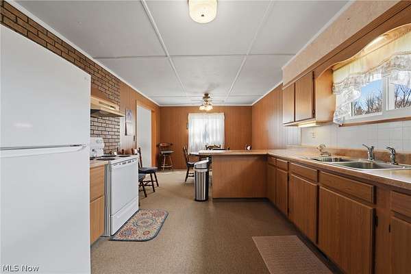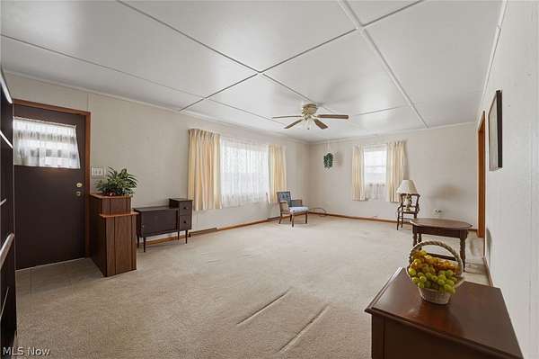 Welcome to this well-loved, one-owner ranch home, thoughtfully built and meticulously maintained over the years! Nestled on nearly 6 peaceful acres, this 3-bedroom, 1.5-bath property offers the perfect blend of comfort, space, and opportunity. Step inside to a spacious eat-in kitchen-ideal for gatherings and everyday living-alongside a large, inviting family room. The main floor features three generously sized bedrooms and a full bath, with hardwood floors hiding beneath the carpet throughout, ready to be uncovered and restored to their original beauty. The lower level adds even more living and functional space, including a finished family room perfect for entertaining or relaxing, a large utility area, and an impressive workshop for hobbyists or those needing extra workspace. A convenient half bath (shower only) is also located in the basement. Outside, you'll find a newer metal roof on both the home and garage for peace of mind. The 2.5-car garage is a standout, complete with a concrete floor, electric, and its own workshop area. Additionally, the property includes three extra sheds, offering ample storage for tools, equipment, or outdoor toys. Enjoy the serenity of country living while still being conveniently located near Roaming Shores, over 30 local wineries, and perfectly situated between Lake Erie and Pymatuning Lake-making it a dream location for fishing enthusiasts and outdoor lovers alike. This is a rare opportunity to own a solid, custom-built home with room to grow, explore, and make your own!