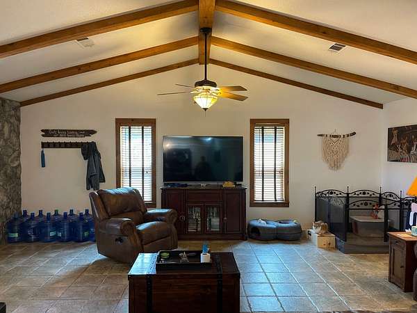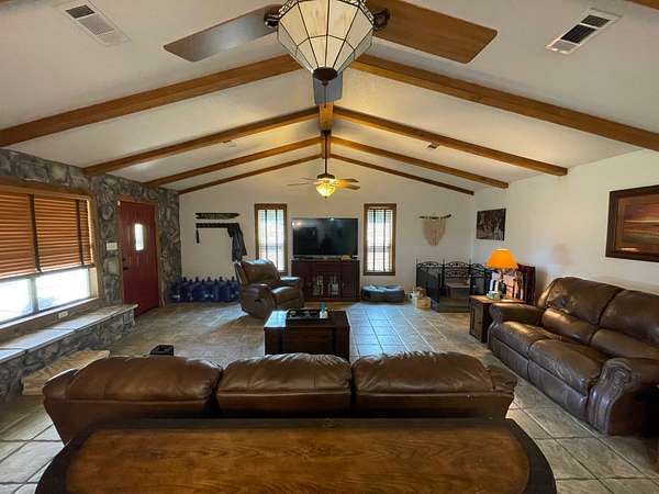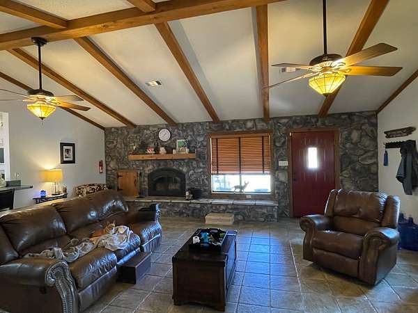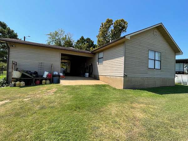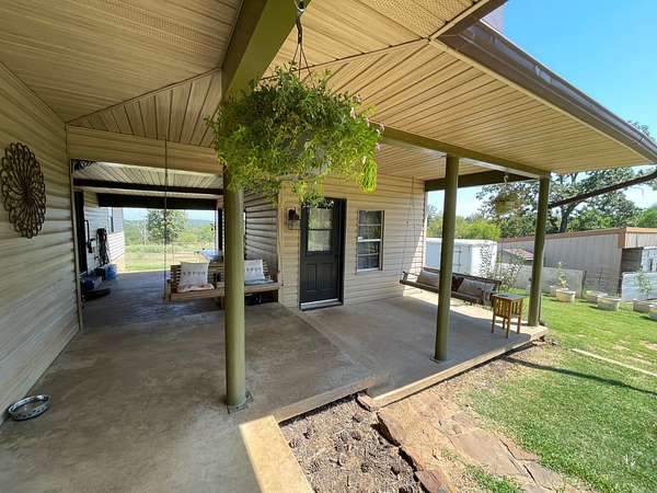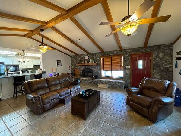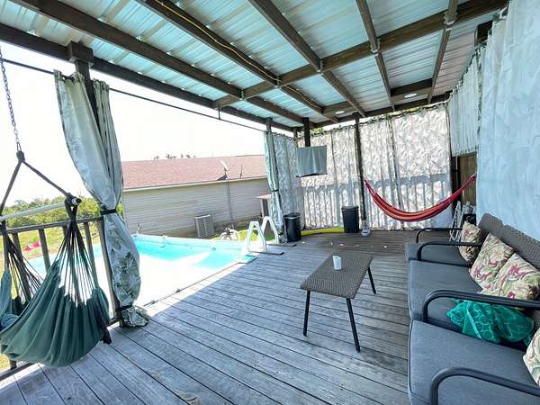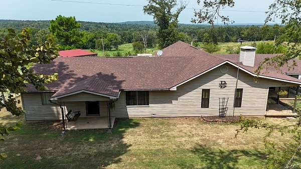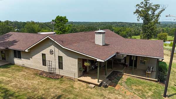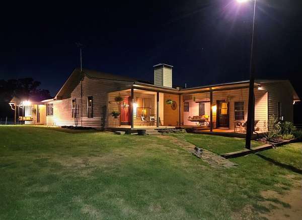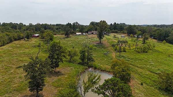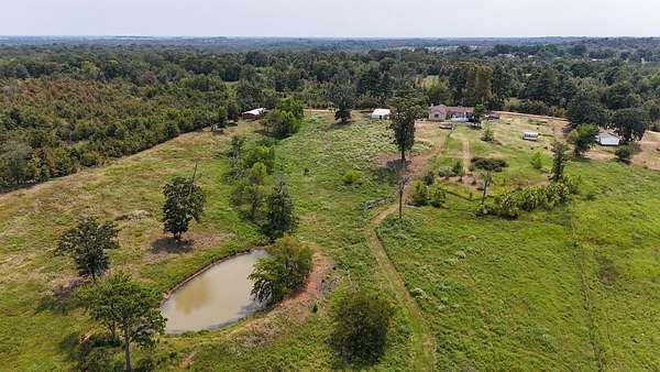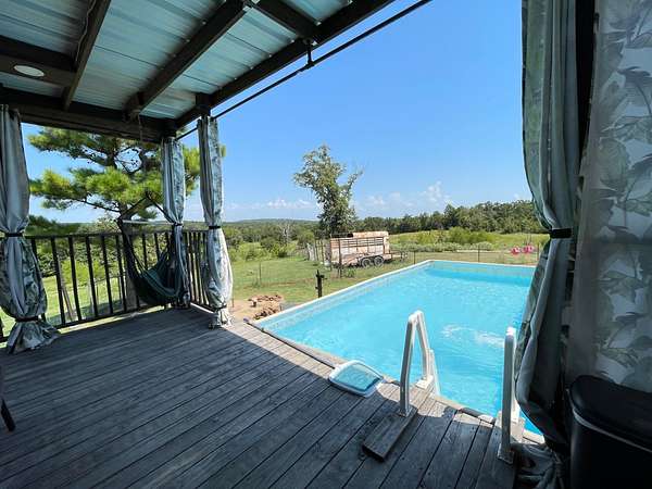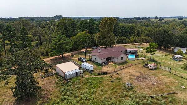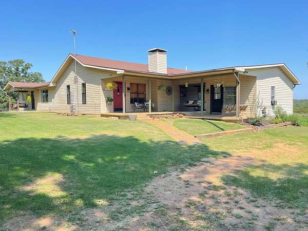 Welcome to Crooked Bridge Homestead that includes a Guest House/Tiny Home! This 4 bedroom 4 bathroom home sits on 20 acres with some magnificent views of the country side and overlooking the pond. The 2504 square foot home has been remodeled with a new addition added in 2000. There are 2 new HVACs, a new roof, and new hot water heater. A 10,000 gallon pool sits in the back yard with a deck that has a TV, swing and furniture. There is a separate bathroom in the pool area with a shower, sink and toilet making a 4th bathroom. Inside this beautiful home is ceramic tile floors with tall ceilings in the living room that have wooded beams. A Stone wood burning fireplace with a wooden mantel graces the home with a pass through door for the wood to be brought in located under the carport/breezeway. Branching off from the living room is a galley kitchen with ceramic tile floors, extra lighting, ceiling fan and many cupboards including built in bread boxes. There is a built in range, oven, microwave, dishwasher and a refrigerator. Down the hallway is a mudroom/pantry/ laundry room with a separate door for going outside, a deep tub sink, a toilet and shower. This room also holds cabinets for food storage and extra refrigerators. The master bedroom has walk in closets and an ensuite bathroom with a sink, vanity and a lighted mirror. The bathtub/shower and toilet are in a separate private room. A second kitchen with a formal dining area comes off from the first kitchen through a separate door. With a gorgeous hard wood looking laminate floor, stainless steel kitchen sink and double oven gas range that stays with a hood fan. There is a pantry and a separate storage closet off from this bonus room. Down the hallway are two more bedrooms with walk in closets, a bathroom with granite counter top and an additional family room with carpet and a closet, that could be turned back into a 4th bedroom. USB phone charging outlets have been installed in the kitchen, master, and pool deck area. Outside of this wonderful home are several outbuildings, a large pond with several fenced in pastures and a fenced in yard. A 50x24 pole building with separate holding pens, 6 sheep/goat birthing pens, hay storage room, and a feed room with a freezer that is equipped with electricity and water. Two sheds size 13x24 used for tool and lawn storage, a goat shed with milking parlor that has electric. There are two separate chicken coops; one for leghorns and another for meat chickens. A creek runs through at the back of the property. The pond is stocked with bass and channel cat and has never gone dry. A greenhouse equipped with electric and water that was finished in 2024 sits behind the home. Garden beds and tubs for raised gardening, a Living Wall gutters for strawberries or lettuce are placed around the property. A storm cellar is in the back yard and a man cave is off the breezeway. Another extra perk to this property is the fully furnished GUEST HOUSE! Sitting on a separate parcel is this one bedroom, one bath, kitchen and living room 500 sq ft. tiny home. Cute as a button! Yet far enough from the main home for privacy. This could be used for guests, an Airbnb, rental or sell it off! With Butcher block counter tops, USB phone charging outlets and 220 amp electric. There are too many extra amenities to list, at this well maintained private setting property. Call today to see this perfect paradise! Call for commission information.