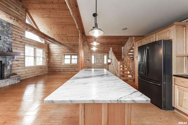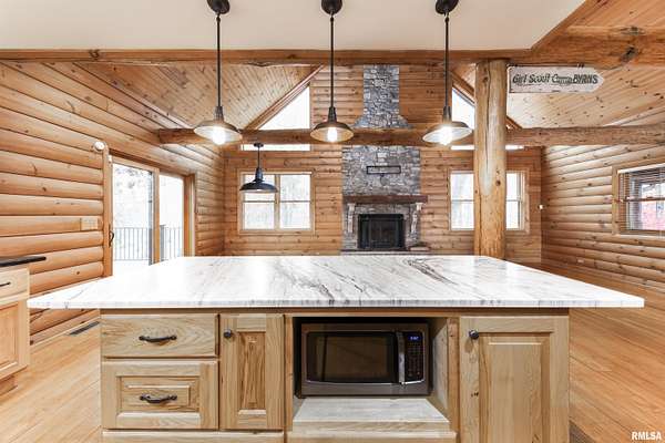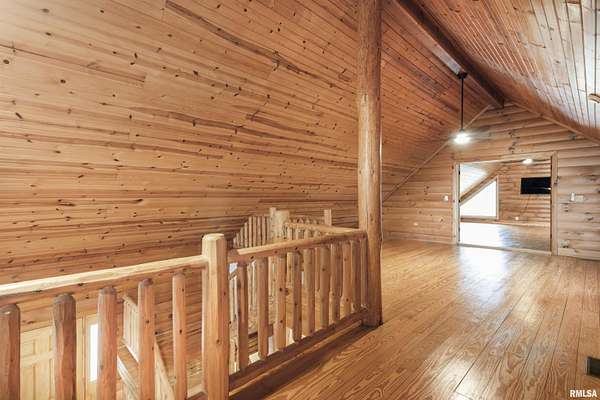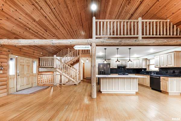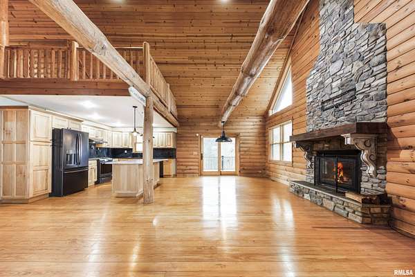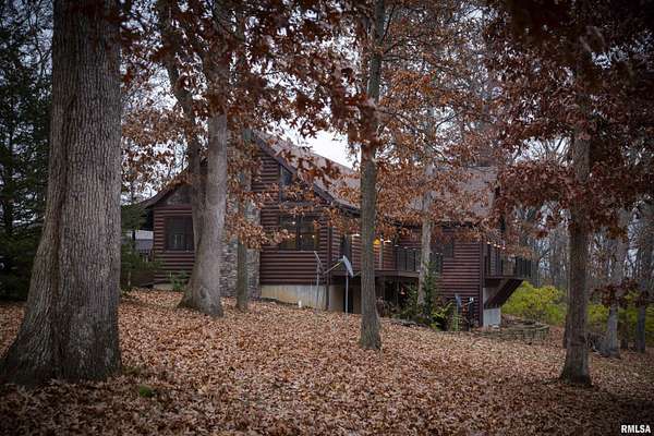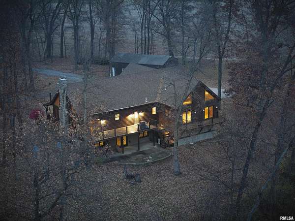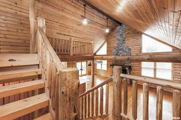 This custom lodge home sits on 13 acres with a nice pond and regular big buck activity. It is set up well for everyday living or as a comfortable hunting lodge getaway. The home includes 3 bedrooms, 4 full bathrooms, a large loft, and two impressive fireplaces that give the space a strong lodge feel. The primary suite offers plenty of room to relax with a private balcony overlooking the land. Two additional decks provide more outdoor space to take in the views. The walkout basement leads to a custom stone patio, making it easy to entertain or head out for the evening hunt. Along with the attached 2-car garage, there is an additional shop for tractors, UTVs, and storage. A solid home on ground that produces. If you want space to live well and enjoy the outdoors right out your back door, this property has a lot to offer. - Custom lodge home with 3 bedrooms and 4 full bathrooms - 13 acres with a nice pond and strong whitetail activity - Large primary suite with private balcony - Two additional decks overlooking the property - Spacious loft and two giant custom fireplaces - Walkout basement with custom stone back patio - Attached 2-car garage - Additional shop for equipment and storage - A great setup for everyday living or a hunting lodge retreat