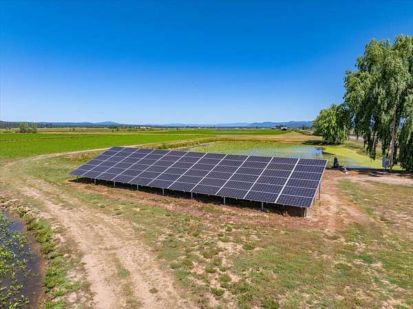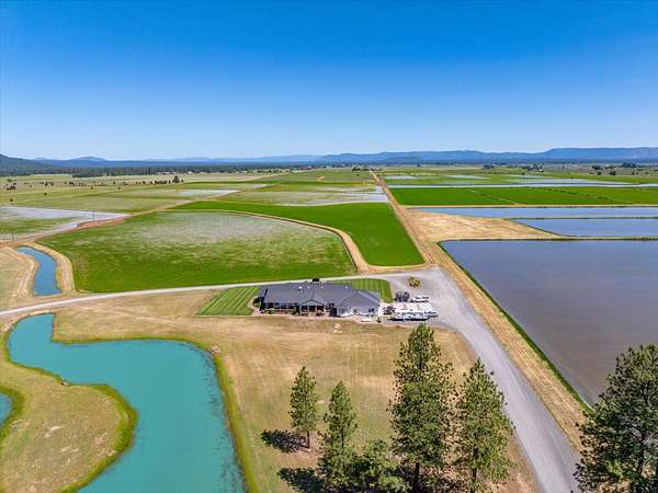 Fall River Valley is not only beautiful, but also offers fertile soil, clean air, spring waters and a crisp climate creating ideal conditions for growing wild rice, one of the most precious grains in our country. This 451-acre ranch offers 408 acres of meticulously thought out and developed roads, levee's, ditches and 33 irrigated rice fields supplemented by solar, all connected with underground mainline. Stunning 3,960 sf custom home with 4 bedrooms and 4 baths. The Great room is open to the living area, dining and kitchen. The well-thought-out-floor plan creates a comfortable, usable atmosphere. Attached 1500 sf 3 car garage plus 2400 sf wrap around covered decks for additional outdoor living space. If there is such a thing as a dream shop, this is it. 4,900 sf insulated and heated metal shop with concrete floor, 5 rollup doors, office and upper storage area. 240 acres are in the Williamson Act This could easily be a wildlife sanctuary, the deer are abundant, you will see them daily. Waterfowl activity is amazing, ducks and geese flock the ranch, there will be times when the fields are white with snow geese. You will see quail, hawks, bald eagles, golden eagles as well as sandhill cranes nesting yearly. The ranch offers a 60' wide, 2600' long dirt runway, it also borders two county roads, both with access to the ranch. Incredible views, close to river access and the quaint town of Fall River Mills.