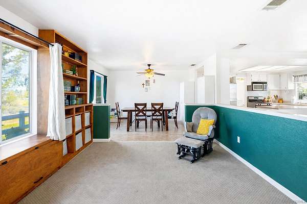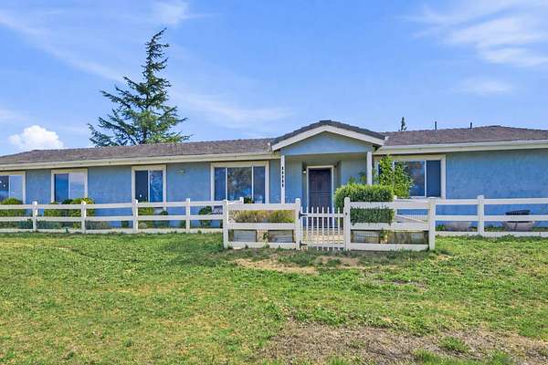 This property is a stunning 2.5-acre ranch in the Lake Riverside Horse Ranch gated community. It features a beautiful, cozy one-level, three-bedroom, two-bathroom home with the potential for a fourth bedroom. Open floorplan, SS appliances, corian counters, cherrywood cabinets. River rock fireplace enjoyed by all rooms. The property offers a covered patio with breathtaking panoramic views of the mountains and hills, making it an ideal location for those who appreciate scenic beauty. In addition to the comfortable living space, the property boasts ample room for an RV and the potential for an Accessory Dwelling Unit (ADU). Fully fenced, ready for boarding your horses, with a 4-stall barn with breezeway, a tack room, 2 storage sheds, and corrals, perfect for equestrian enthusiasts. This home and land provides a secure and serene country paradise. Whether you're a horse lover or simply seeking a peaceful rural lifestyle, this ranch offers an abundance of amenities and natural beauty. Behind the private gated community, you can enjoy the park, community pool, playground, picnic cabana, fishing and aa private airstrip.