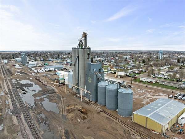 Est $5,188/moThis exceptional industrial property offers unbeatable access and versatility, perfectly suited for large-scale agricultural or industrial operations. Featuring extensive rail frontage with capacity for over 52 grain cars, this site is equipped with everything you need to optimize logistics and storage. Property includes a truck scale, grain elevator, multiple grain bins, a spacious cold storage building, functional office space, and towering grain silos. With infrastructure already in place this property is a rare find for investors or operators seeking a high-capacity, strategically located facility. Don't miss your chance to own this turnkey industrial asset!