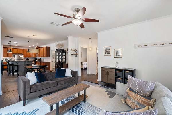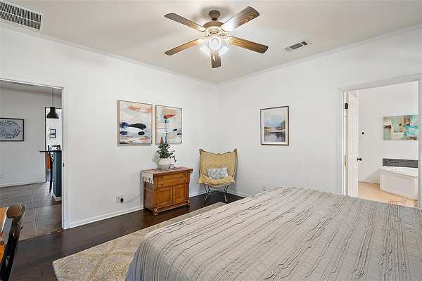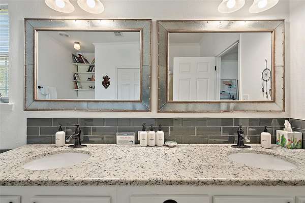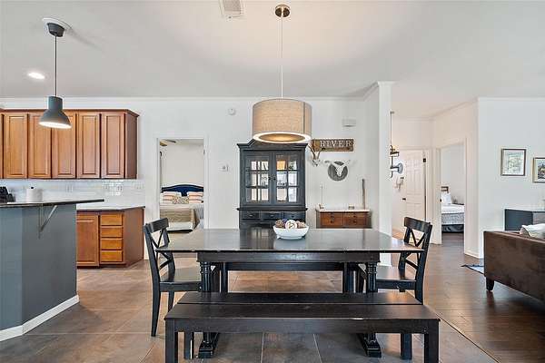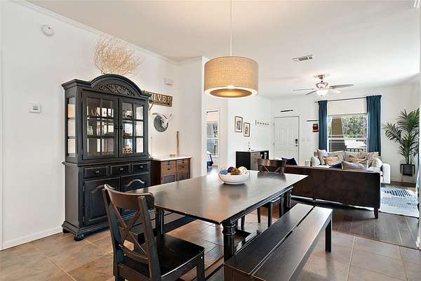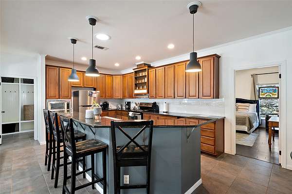 - Bookcases, Breakfast Bar, Ceiling Fan(s), Double Vanity, Kitchen Island, No Interior Steps, Open Floorplan, Pantry, Primary Bedroom On Main, Soaking Tub