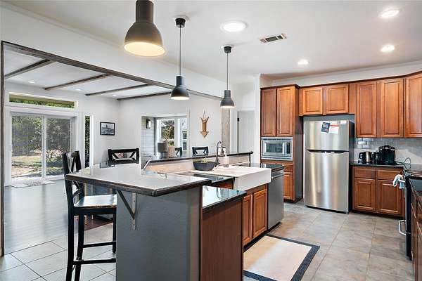Welcome to your dream retreat in the heart of the Texas Hill Country! This beautifully updated single-story home sits on a serene 1.5-acre lot, offering the perfect blend of comfort and style. Featuring 4 generously sized bedrooms and 2 full bathrooms, the open-concept layout boasts soaring ceilings, modern finishes, and an abundance of natural light throughout. Step outside to enjoy your morning coffee on the charming patio, entertain guests in the expansive backyard, or unwind in your private hot tub-the perfect blend of comfort and outdoor living. A bee box on the property offers a unique opportunity for hobbyist beekeeping, pollination support for your garden, and even homemade honey. A sweet touch for nature lovers. A newly replaced water well pump ensures peace of mind, while the RV hookup adds convenience for guests or travel enthusiasts. Most furnishings are negotiable, making this home move-in ready. Located just minutes from local wineries and breweries, this property offers a peaceful escape with easy access to Hill Country attractions. Short-term rentals are allowed-ideal for those seeking a personal getaway or investment opportunity. Don't miss out on this unique opportunity to cultivate both a home and a harvest!