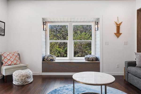 From 290 coming from Austin, head NW on Fitzhugh Rd for 14 miles, turn left onto Angel Fire Rd, in 0.3 miles house on the left. From 290 coming from Dripping Springs, head NW on McGregor Ln for 3.7 miles, turn left onto W Fitzhugh Rd in 0.7 miles turn left onto Angel Fire Rd, in 0.3 miles house will be on your left