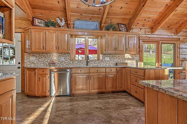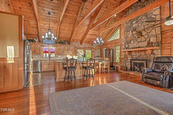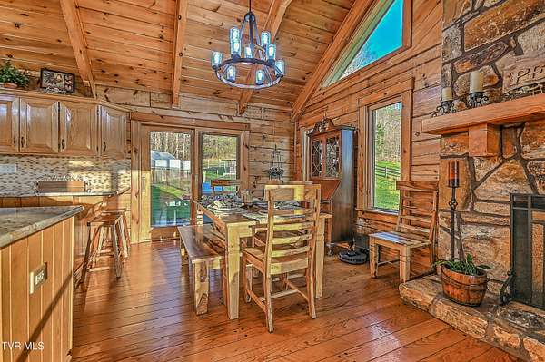 Looking for an equestrian property in Bristol? Don't miss this one! Boasting what is arguably one of the best views in Bristol, this 13+ acre farm is as picturesque as they come. Enjoy breathtaking views of the South Holston mountains from every room, perfectly framed from the covered front porch where the row fencing creates a magazine-worthy backdrop for morning coffee or unwinding at the end of the day. Showcasing 3 large bedrooms, 3 full bathrooms, and over 2,700+ sqft of thoughtfully designed living space, this log cabin is loaded with character and charm. Flooded with natural light, the home features pegged hardwood floors, vaulted T&G ceilings, a stone fireplace, and an open-concept layout that flows seamlessly into the gourmet kitchen with granite countertops, stainless steel appliances, and a gas cooktop. The primary suite offers a true retreat with a spacious layout, dual walk-in closets, and an en suite complete with double vanities, a walk-in shower, and a soaking tub. Downstairs, the finished walk-out basement provides excellent flexibility--ideal for guests, in-law quarters, or short-term rental potential with its own private access. Step outside and this property really starts to separate itself. With over a mile of row pasture fencing, the farm is fully equipped with a 36x46 loft barn featuring 6 stalls, a wash bay, and loft area, along with a 28x36 detached garage and an additional 14x46 open stall barn. Beyond its beauty and functionality, this property also offers strong income-producing potential. Currently utilized for horse boarding, it's well-positioned to continue generating revenue in its current use, while also lending itself to short-term rental opportunities, private events, photography sessions, or even a small-scale venue concept. Conveniently located in the heart of it all, you're just minutes from the South Holston River, Weir Dam, and South Holston Lake, with easy access to 421 and 394--putting grocery stores, restaurants, and downtown Bristol all within a short drive. Whether you're looking for a working farm, an investment opportunity, or a one-of-a-kind place to call home--this is one you don't see come available often. All information herein is deemed reliable but not guaranteed and is subject to buyer and buyer's agent verification.