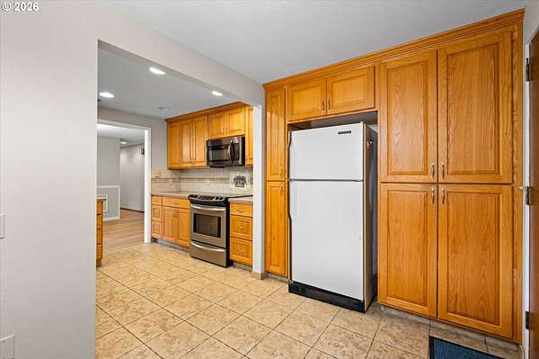 - Builtin Range, Dishwasher, Disposal, Down Draft, Free Standing Refrigerator, Microwave, Pantry, Plumbed For Ice Maker, Stainless Steel Appliance