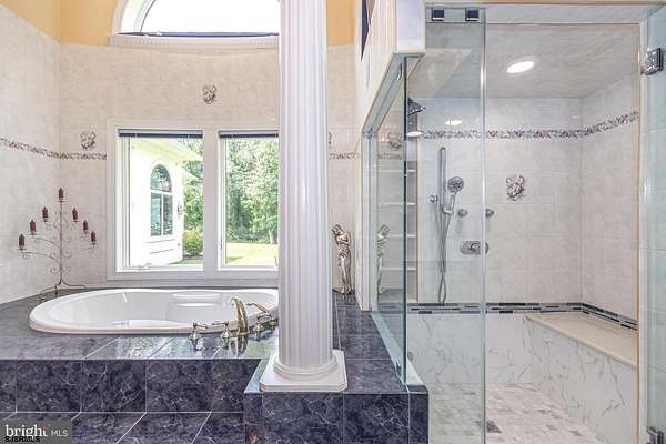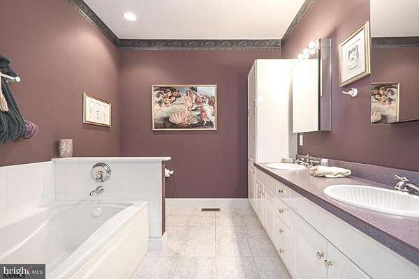 Spectacular 5 bedroom, 7 bath estate home nestled on over 2 acres in prestigious Moorestown is conveniently located to Philadelphia & New York! This custom home is the epitome of luxury, with a majestic driveway, nearly 9000 sq feet on the first floor alone, radiant heated flooring throughout, a brand new roof, 6 air conditioners, 7000 sq ft partially finished basement, and a rare in-law/au pair suite. The grand marble foyer opens to the 2-story expansive great room, complete with vaulted ceilings, dramatic gas fireplace, plush carpeting, and elegant Roman columns. The awe-inspiring family room boasts coffered ceilings with dentil molding, gleaming hardwood flooring, stunning wall of windows, fabulous over-sized granite bar, movie theater with custom seating, and convenient powder room . The sundrenched gourmet kitchen features granite countertops & bar, granite island with additional storage, recessed lighting, Italian tile backsplash, ceramic tiled flooring, 2 sinks, modern pendant lighting, double oven, 5 burner gas range, and a breakfast room with exquisite chandelier. Don't forget the huge butler's pantry with full-size freezer , fridge, sink, and trash compactor. The elegant dining room is highlighted by handcrafted crystal chandelier, decadent Italian columns, gorgeous millwork, dentil molding inlay within the crown molding, tray ceiling with trim, chair rail with designer paint, bump out with 4 large windows! The cozy sitting room makes the perfect library or den, with fireplace and wall-to-wall carpeting. The first-floor office/study with built-ins can be used as a 6th bedroom. The extravagant primary suite boasts 2 massive walk-in closets, sitting room, plush carpeting, window seats with extra storage, a wall of windows overlooking the gardens, a powder room, and opulent full bathroom with water closet, Jacuzzi tub with sleek black tile surround, dual sinks, striking columns, and floor-to-ceiling tiled shower. The left wing of this grand estate has three bedrooms ( one is part of in-law suite) with huge walk-in closets, 2.5 bathrooms, full laundry room, several storage closets, and separate entrances from the back, side, and garage for your convenience. The massive basement has a bedroom with egress windows, gym with commercial grade water fountain, second office, a full bathroom, and additional nearly 6000 sq feet just waiting to be finished ! Don't miss out on your dream home!