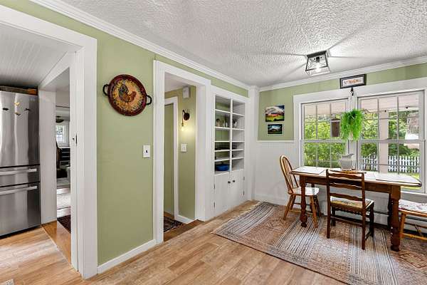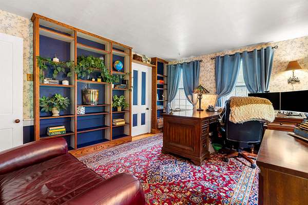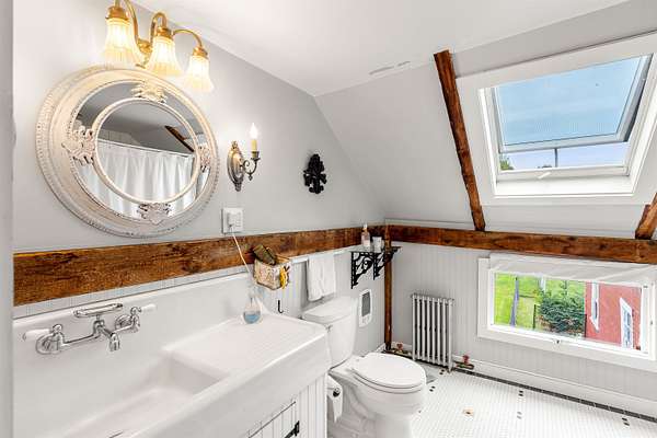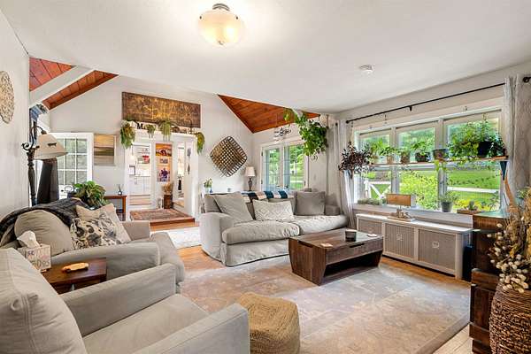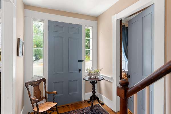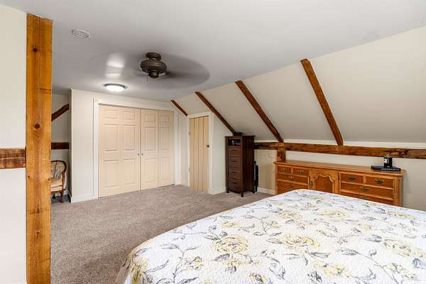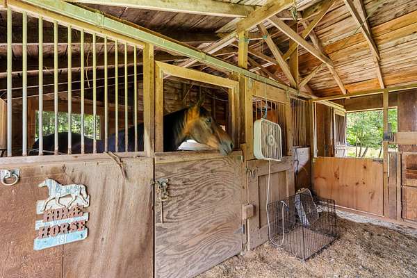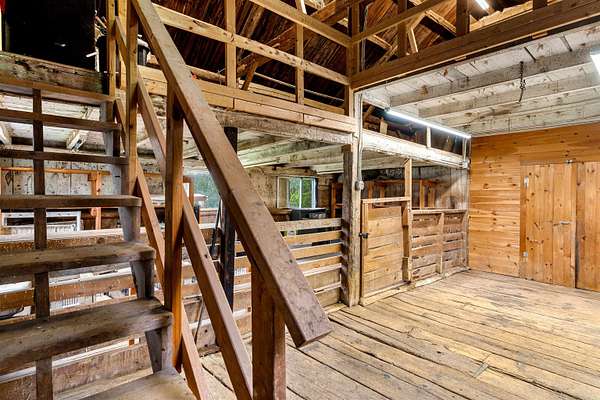 This distinguished 1840s cape/farmhouse offers an exceptional blend of historic integrity and modern functionality. Set on 5 acres with a beautifully maintained property, the residence features 4 bedrooms and 3 baths, showcasing timeless craftsmanship with exposed wood beams, pine flooring, and abundant natural light throughout. The custom kitchen is appointed with built-in cabinetry and a generous walk-in pantry, opening to the main living room with cathedral ceilings and French doors leading to a private patio. The first floor includes a well-sized bedroom, a full bath, a 3/4 bath, and a combined laundry/mudroom, providing convenience and flexibility for daily living. The second floor offers an open loft area and a spacious primary suite complete with a full bath featuring a whirlpool jetted soaking tub and an expansive walk-in closet. The property includes an attached three-story barn with a thermostat-controlled workshop, hay storage, and dedicated tack and feed areas. A separate detached barn provides two large horse stalls, two indoor poultry coops, and additional storage, and opens directly to 2.5 fenced acres equipped with electricity and a livestock shelter. Outdoor amenities enhance the property's appeal, including mature apple and pear trees, a full garden area, a covered shed, and a fenced dog enclosure. This exceptional farmstead offers historic charm, practical agricultural spaces, and a serene country setting ideal for equestrian, hobby farm, or homestead living. Delayed showings until 02-12-26 OPEN HOUSE on 02-14-2026 11am-1pm