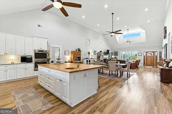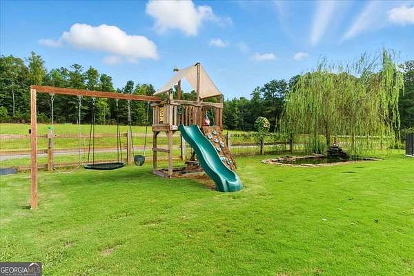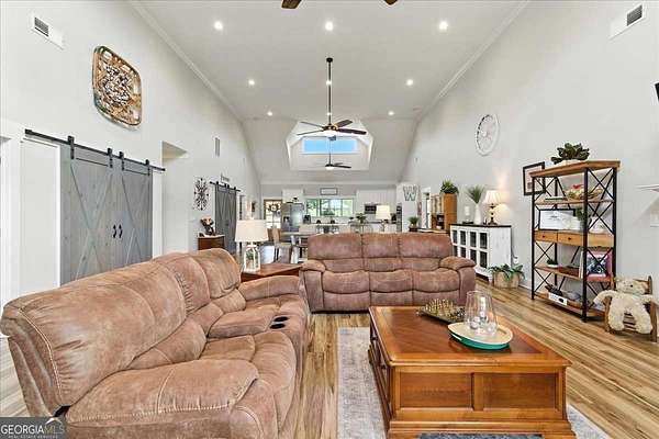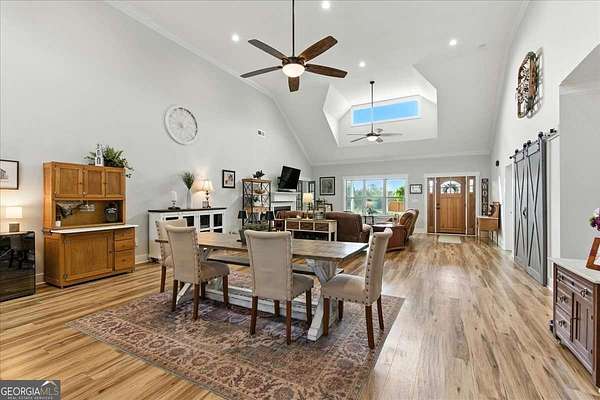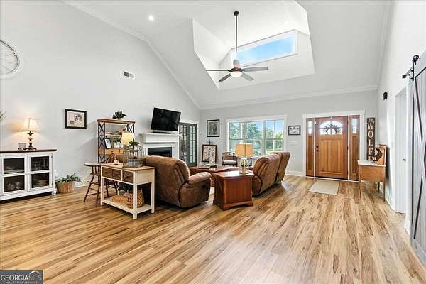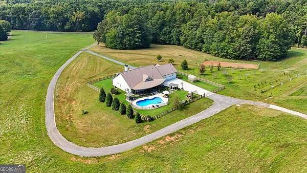 Tucked away on 18.83 breathtaking acres, this extraordinary turnkey mini farm isn't just a home, it's a lifestyle. From the moment you arrive, the fully fenced grounds, electric gated entry to the home, and serene landscape set the tone for something truly special. This custom stepless ranch features four bedrooms, four and a half baths, and an ideal blend of refined living and functional farm charm. Every corner has been thoughtfully designed to bring comfort, beauty, and practicality together in one remarkable estate. The property is completely enclosed with thick tinsel fencing and electric gates surrounding the home, pool, koi pond, and hot tub for privacy and security. A well-equipped barn boasts four stalls plus heated and cooled living quarters on a separate septic system, perfect for guests, farm staff, or even additional income opportunities. The grounds are enhanced by a mature orchard of apple and pear trees and a thriving garden, creating a peaceful, self-sustaining haven. Step inside and prepare to be impressed. Soaring 22-foot vaulted ceilings with custom skylights bathe the open floor plan in natural light. The gourmet kitchen is an entertainer's dream, featuring a large center island, prep sink, and a unique pass-through window to the back porch. A three-car pull-through garage opens to a well-planned drop zone with a laundry room, utility sink, oversized coat closet, and expansive pantry. The primary suite is a true retreat, with vaulted tray ceilings, dual large closets, and a spa-inspired bathroom offering double vanities, a jetted soaking tub, and a fully tiled rain shower. Two additional main-level bedrooms include spacious closets and private en suites, while the upstairs bonus room (or fourth bedroom) provides its own full bath, ideal for guests or recreation. Work from home in style with the expansive home office, featuring coffered ceilings, custom built-ins, and a charming window bench overlooking the pasture. Outdoor living is just as impressive, with tongue-and-groove pine ceilings on both porches, a five-year-old saltwater pool, a fully stocked koi pond, and an entertainmentready patio perfect for gatherings. Designed for ease and elegance, this property is fully prepared to accommodate horses, livestock, or personal agricultural pursuits. It's the perfect fusion of modern luxury and country charm, offering a one-of-a-kind opportunity to own a mini farm estate that truly has it all.