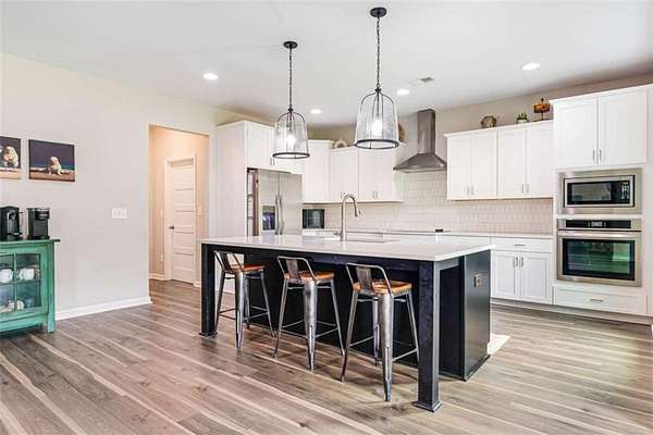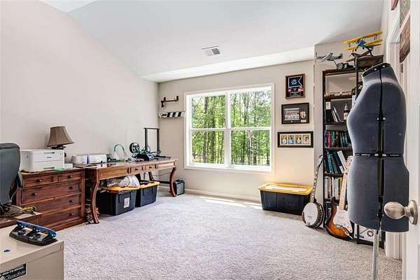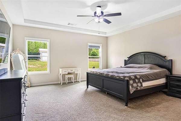 Discover this beautiful 2023-built home, perfectly located in the highly sought-after Sandhill-Hickory Level area of Carrollton, GA, offering a rare combination of modern living and serene country charm. Situated on 4.92 acres of fully usable land, this property provides the perfect setting for both relaxation and everyday convenience. Featuring 5 spacious bedrooms and 3.5 bathrooms, this home is ideal for growing families or those who love to entertain. The open-concept floor plan offers a seamless flow between the expansive living areas, while a versatile loft space provides additional flexibility for an office, playroom, or cozy den. The kitchen is a true highlight, open and spacious with abundant cabinetry, an oversized island with a breakfast bar, and a welcoming eat-in breakfast area. The luxurious primary suite is conveniently located on the main level, offering both privacy and comfort. Step outside and enjoy your morning coffee or evening relaxation from the covered front and rear porches while taking in the peaceful views of the surrounding nature. For those dreaming of a mini-farm, you'll love that fruit trees have already been planted, garden beds have been established, and a large chicken coop has been built, offering a wonderful head start toward your country-living goals. Adding even more value, the property features a 60' x 30' shop, fully insulated with spray foam, heated and cooled, and equipped with its own separate power meter perfect for hobbies, storage, or a small home-based business. A 13' x 60' shed has also been added to the back of the shop, providing even more outdoor storage space for equipment, tools, or farm supplies. This home delivers modern amenities, generous living space, and a rare move-in-ready opportunity with thoughtful upgrades already in place & features you won't typically find with new construction. Don't miss out on this true gem in the heart of the country!