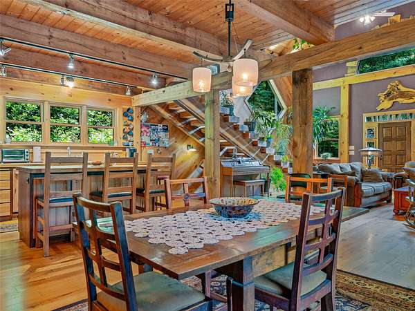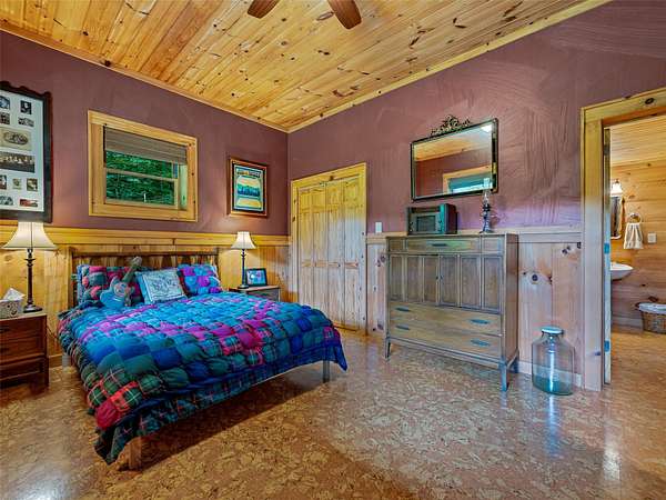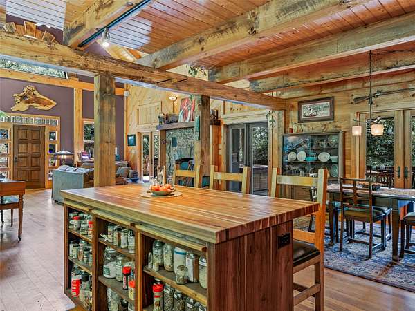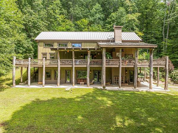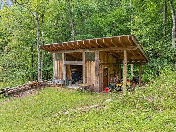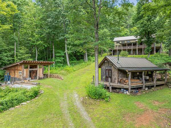 Set within a +-77 acre private mountain cove, this exceptional property combines artisan finishes with a postcard-perfect mountain setting. Constructed with timber harvested from the land, this remarkable post-and-beam residence was thoughtfully designed and hand built by master craftsmen. Every detail of the 3900+ sf showcases the finest quality, and the practical 3 br / 3 ba floorplan allows for effortless living. Expansive decks invite seamless indoor-outdoor living amidst the sounds of nature. Beyond the home, a detached workshop with electricity provides space for creative pursuits. The land abounds with natural wonders: cascading waterfalls, pure mountain springs, rock outcrops, trails, a mature hardwood forest, and abundant wildlife including the majestic blue ghost fireflies. The property is located a short 30-minute drive from both Cashiers and Sylva, offering easy access to nearby amenities, shopping, lakes, recreation, and more. Don't miss this special value and opportunity!