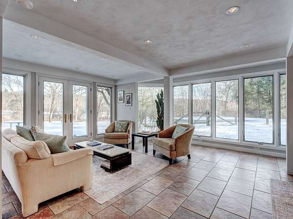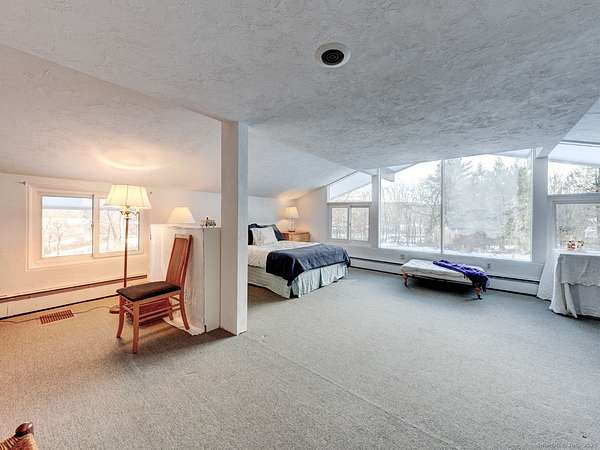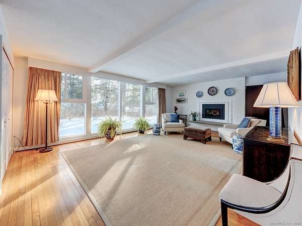 Welcome to Riverbend Farm, a beautiful 9 acres (over two lots) located on the Bantam River! A truly one of a kind property within Litchfield's Historic District with stunning views of rolling property down to the river. Set back from the road, up the circular drive this Mid Century beauty has a flexible floor plan that features 4 bedrooms, 4.5 baths and over 4,000 sqft. Entry floor: Enter the airy foyer with a glimpse of the meadow. The entry floor has one of two primary suites. This suite has a wall of windows, a gas fireplace, hardwood floors and French door access to a patio and the in-ground pool. This room has a large en-suite bath with double sink. Adjacent to the entry is one of the home office/library/den spaces with large windows and hardwood floors. Through the foyer and down a half flight of stairs is the...
