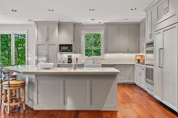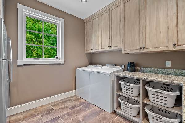 - Built-In Gas Range, Dishwasher, Disposal, Double Oven, Dryer, Microwave, Refrigerator, Stainless Steel Appliance(s), Washer