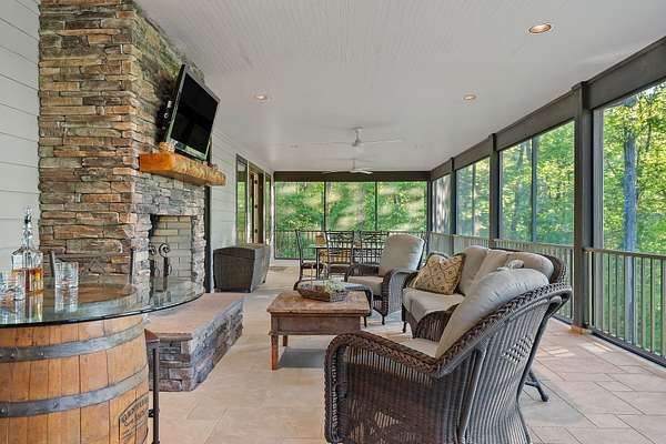 Escape to Center Hill in this exceptional custom-built lake home just 0.7 mile from boat launch and water access. With expansive lake views, designer finishes, and a thoughtfully designed floorplan, this beautifully maintained 3 bedroom, 4.5 bath home offers luxury, comfort, and function. The primary suite features a spa-inspired bathroom, while each additional bedroom includes its own private ensuite. The designer kitchen is appointed with a Sub-Zero refrigerator and elevated finishes, and the living room fireplace adds warmth and style to the main gathering space. Outdoor living is a standout with two covered porches, both with fireplaces, including a 16x50 screened porch, plus an open deck positioned to enjoy the view. An expansive media/recreation room provides outstanding space for entertaining, and the main level 2-car garage is complemented by an oversized basement garage with room for large boats, lake toys, and equipment. Concrete driveways, abundant parking, excellent condition, and quality craftsmanship throughout make this a unique Center Hill Lake offering. A rare private boat dock is also available for purchase separately (MLS 3164592).