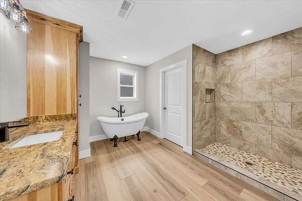 Luxurious Modern Log Cabin in The Ridges at Franklin Discover refined mountain living with this exquisite 4-bedroom, 3-bath modern log cabin set on 7.1 private wooded acres in the exclusive, gated equestrian community of The Ridges at Franklin. Blending timeless craftsmanship with sophisticated design, this 2,984 sq. ft. estate offers both tranquility and convenience--just 10 miles from South Pittsburg and Sewanee. Inside, you'll be greeted by dramatic vaulted wood ceilings and expansive windows that flood the home with natural light, seamlessly connecting the indoors to the serene forest surroundings. Luxury LVP floors throughout, custom hickory hardwood cabinetry, granite countertops, and premium stainless steel appliances elevate the open-concept kitchen and living areas, perfect for both quiet evenings and elegant entertaining. The lavish primary suite is a true sanctuary with a private loft spacious enough for a sitting area with sweeping wooded views that invite you to wake up with the sunrise and unwind with the setting sun. Three additional bedrooms and three full baths ensure that family and guests enjoy the same level of comfort and sophistication. The fully finished walkout basement transforms the home into an entertainment hub. A dedicated home office provides the perfect space for remote work or study, while the expansive recreation room is ideal for a home theater, billiards, gaming, or even a fitness area. With direct access to the outdoors, it's the ultimate spot for hosting gatherings that flow easily from indoors to the private wooded backyard.