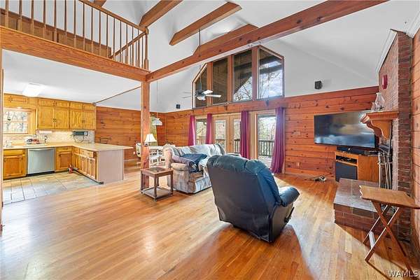Experience simple living at its finest with this rare 57+/- acre serene property in Eutaw, featuring a charming log cabin, stunning views, and every amenity you could need! Tucked away in complete privacy, this property offers endless opportunities to fish, hunt, ride horses/ATVs, grow a farm, or simply enjoy the peaceful setting. The well-maintained cabin features a wraparound porch, open floor plan, upstairs loft, and a full walkout basement with a rec room, wood stove, bar area, and laundry room. The grounds feature fruit and nut trees along with mature timber. Outside, enjoy a stunning pond with a pier, in-ground pool, a barn, and both city and well water. A truly exceptional opportunity to create your own retreat, homestead, or recreational paradise. Call today to schedule a showing!