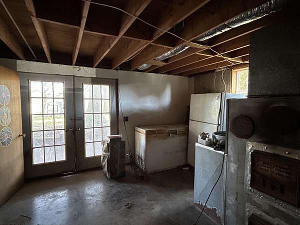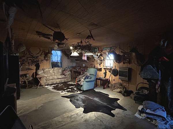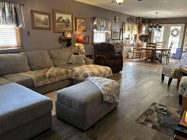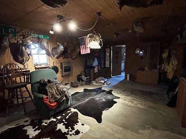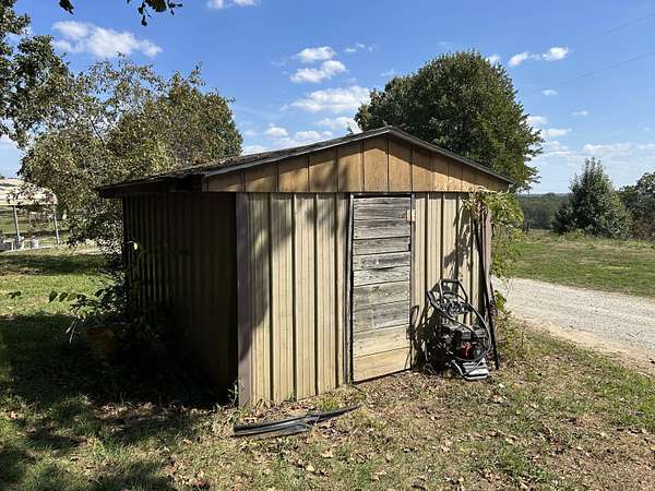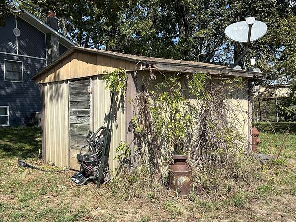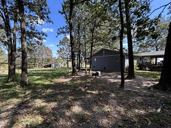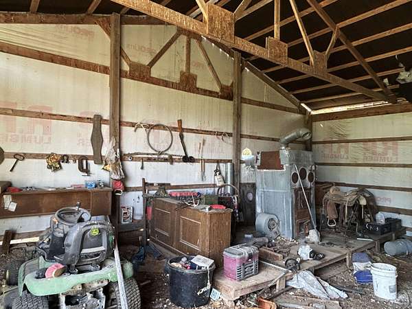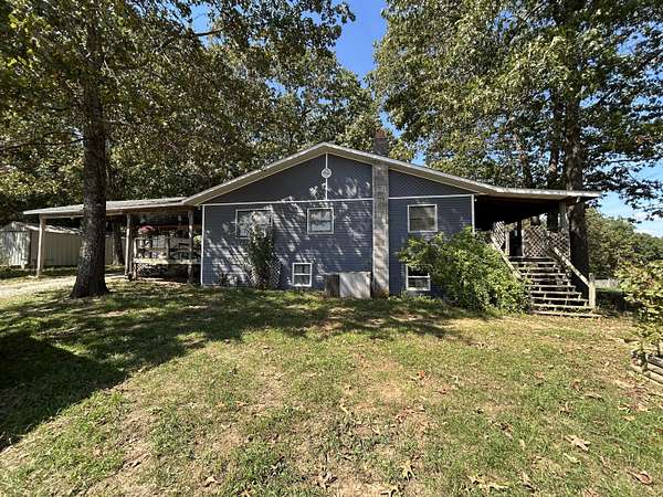 Spacious home with multiple outbuildings on approximately 7.65 acres! This 3-bedroom, 2-bath property offers 1,440 sq. ft. of main floor living space. The home features central heat and air for year-round comfort, plus a partially finished walk-out basement with a wood furnace for supplemental heat. The kitchen boasts beautiful oak cabinets, abundant countertop space, and a convenient snack bar, with matching oak cabinetry in the main floor bathroom. The primary bedroom includes two walk-in closets, a dressing area, and a luxurious soaker tub. The living room opens to a full-length side porch, perfect for grilling, entertaining, and enjoying the quiet countryside, along with an inviting covered front porch. The large yard features mature trees and offers panoramic views.Outside, you'll find a 30x40 metal barn with dirt floor, 10-ft sides, an 18x40 lean-to, and a Viktor wood furnace. Additional outbuildings include a 12x22 metal building with concrete floor, 8-ft sides, and a lean-to, a chicken house, an 8x24 chicken barn with runs, a well house, and an insulated dog kennel with 3 outside runs -- providing plenty of room for storage and hobbies. The land includes both wooded areas and pasture divided into three fenced sections, plus a small pond. All measurements are approximate. This property combines comfortable living with country charm and plenty of space for work, play, or hobby farming.