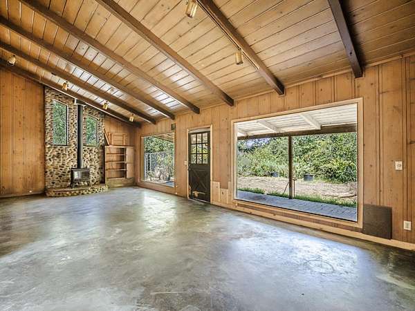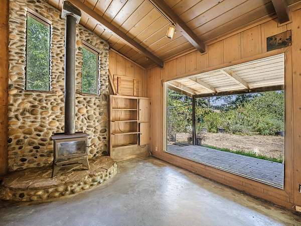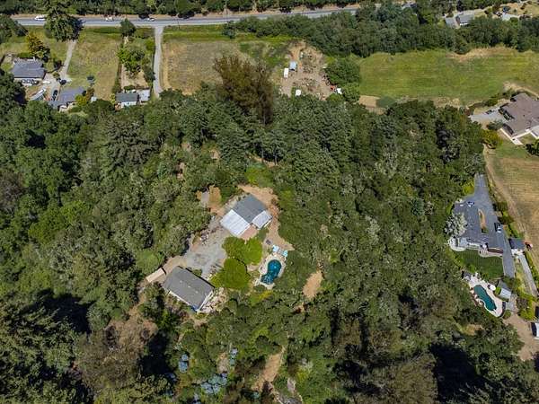 Nestled in the charming hills of Aptos, this unique property offers a blend of rustic charm and future potential. With an expansive lot size of 363,465 sq ft (8+ acres), this home provides ample space for outdoor activities and quiet country living. Home is a true fixer - appears to have solid bones - buyer would need to further investigate. The flooring features a mix of concrete and tile, adding to the home's distinct character. A cozy wood stove serves as the primary heat source, adding warmth and ambiance to chilly evenings. Additional amenities include a black-bottom, in-ground pool that promises endless summer enjoyment, and a 1800+ sq. ft. barn (built in 2001), perfect for storage or hobbyists. The property also features 2 useable flat acres in the lower lot (2 acres of sunflowers at one point:) It is located within the Pajaro Valley Unified School District, ensuring educational facilities are accessible. Although there is no formal dining room or family room, this home offers informal spaces for gatherings and family time. Find yourself in the heart of Santa Cruz County with beautiful beaches and endless outdoor adventures.