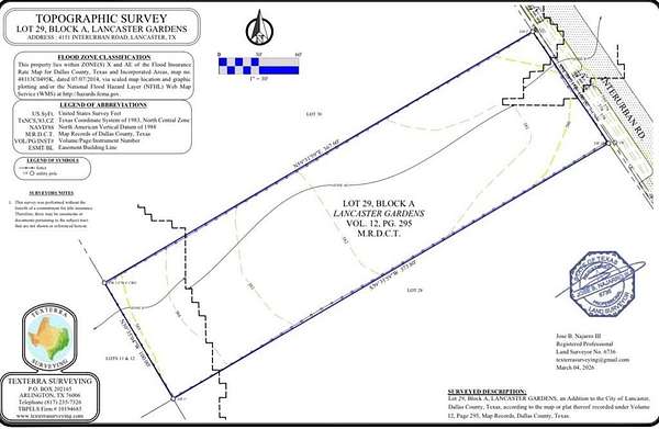 Prime opportunity to own a strategically located lot at 4151 Interurban in Lancaster, Texas. This property offers excellent visibility and convenient access to major roadways, making it ideal for a variety of potential uses. Situated in a growing area within the Dallas-Fort Worth metroplex, the lot is surrounded by established residential neighborhoods and ongoing development, providing strong future upside.