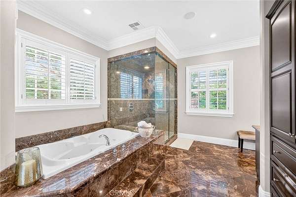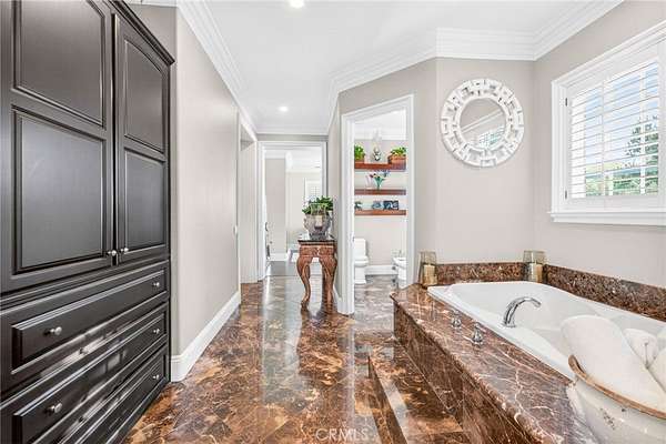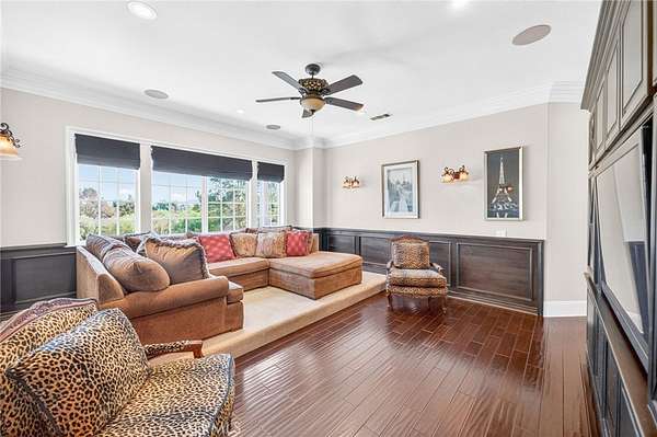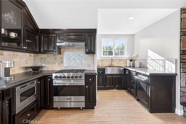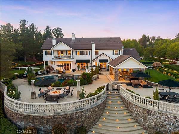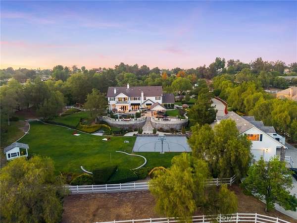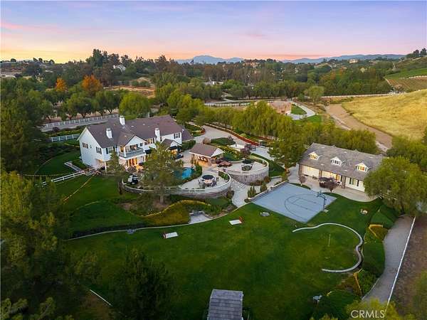 Experience refined country living in this extraordinary luxury estate in Temecula Wine Country, offering approximately 6,887 square feet of thoughtfully crafted living space on five usable acres. The estate features a main home and a guest home with the main home having six spacious bedrooms, including two on the main level, and five and a half bathrooms. The oversized kitchen impresses with a striking large granite island, Thermador double ovens, and a Sub-Zero refrigerator. Hardwood flooring enhances the main living areas, while a carpeted staircase leads to the second level, where hardwood floors continue alongside four additional bedrooms, three bathrooms, a laundry room, and a bonus movie room. Step outside to a true backyard retreat, complete with a resort-style pool and spa, outdoor kitchen, and beautifully landscaped patio. Dramatic, castle-inspired stairways lead to a basketball court, detached garage and pasture with barn and arena. A private ADU guest home sits above the garage, offering a versatile space ideal for guests, extended family, or potential rental income, with convenient RV parking nearby. The expansive, flat acreage also provides ample opportunity for equestrian use or additional outdoor amenities. This exceptional property offers a rare blend of luxury, privacy, and endless potential in one of Southern California’s most desirable settings. For added convenience, RV parking with a dedicated plug is located adjacent to the ADU. This 6 bedroom home is located in Country Road Estates which consists of 128 - 5 acre parcels just on the edge of Temecula Wine Country. The location is super convenient to town and centrally located to some of the best schools Temecula has to offer. Neighboring homes features large acreages, groves and vineyards. Just minutes from highly desirable Linfield Private School and Saint Jeanne De Lestonnac. Contact Jennifer Conklin | Conklin Luxury Group Allison James Estates & Homes 951-675-1331 for private showing. JenniferConklin.com
