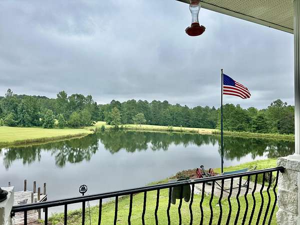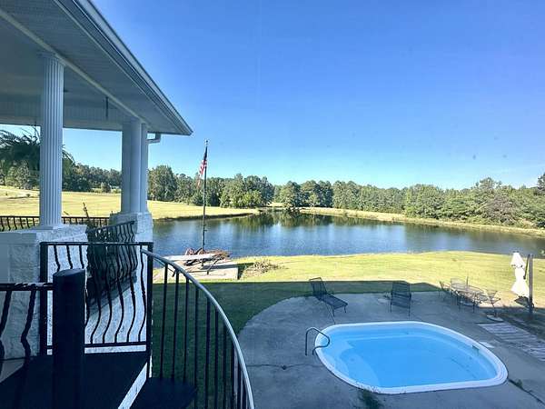 Here is a unique opportunity to own one of the most unique and picturesque homes in the entire county with 38 secluded acres, private custom wrought gates for entry. This lovely home features 6 ponds all of which are spring fed and full of catfish, brim and bass fish. Solid construction with steel framing. This home features two bedroom on each floor with full private bath. There are two extra half baths as well. Included in these 6 bedrooms are a mother in-law suite on the main floor complete with private den and kitchenette. This home is perfect for multigenerational living. Downstairs you will find a full size kitchenette with full stove and fridge. There is trim molding throughout the main level rooms. There are two beautiful expansive covered porches with unbelievable views. The grounds features hills, a fishing dock, a small decorative water fall and private splash pool. There are two double garages, a garden shed, and a carport. The barn has recently been reroofed, and features loads of space along with water and electricity. This estate is truly one of a kind.
