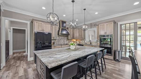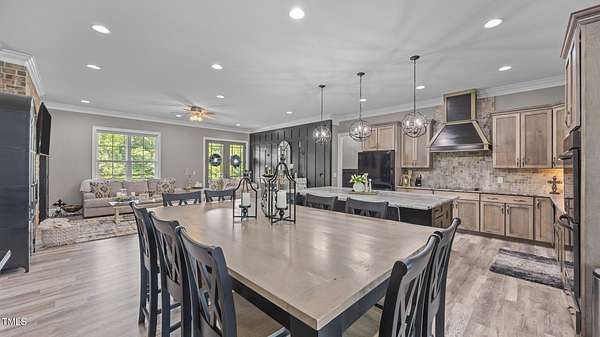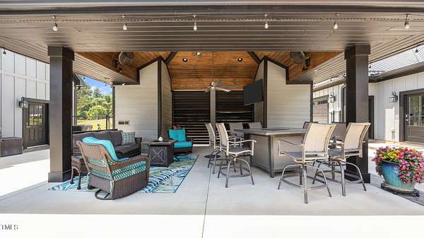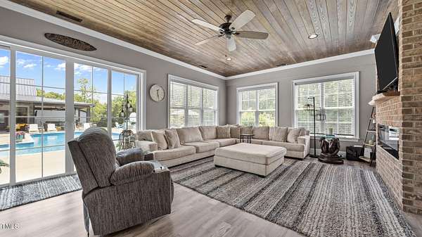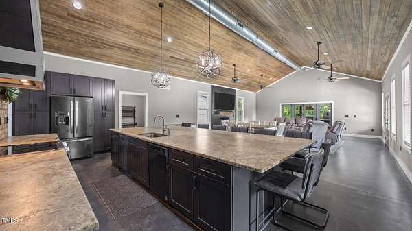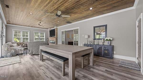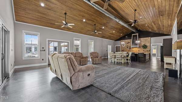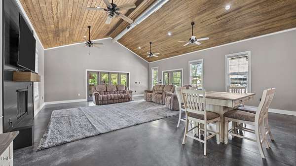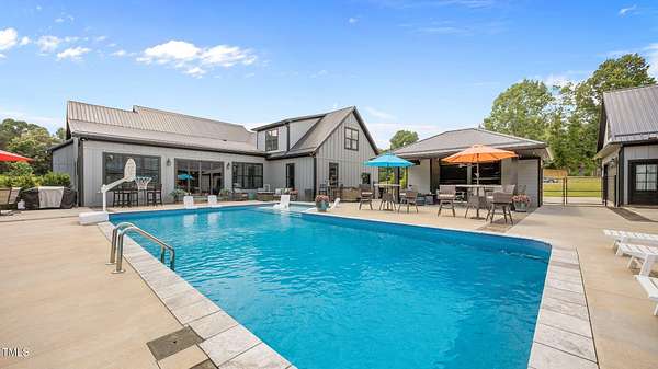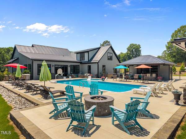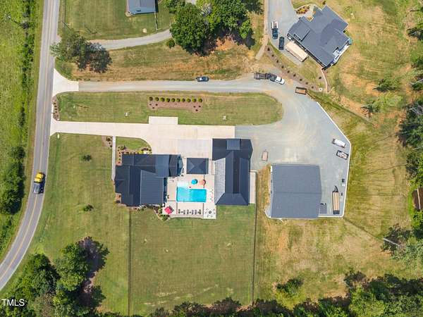 Exceptional Estate in Southern Alamance County. Welcome to this extraordinary multi-structure estate situated in desirable Southern Alamance County. Set on a beautifully landscaped property with apprx 4,210sqft in the main home and two additional versatile structures, this one-of-a-kind retreat is built for luxurious living, entertaining, and flexible use. Every detail, from the custom finishes to the thoughtfully designed outdoor living spaces, reflects craftsmanship and care. Main Residence - 3 Beds | 3.5 Baths - Open Concept Floor Plan with spacious living and entertaining areas. Metal roof. Sealed crawlspace. Large Kitchen with oversized island, leathered granite countertops, custom cabinetry, built-in double oven, and smooth-top cooktop. Walk-In Pantry with custom shelving and dedicated outlets. Primary Suite includes a spa-style tile shower with seat and dual niche, his/her vanities with makeup area, and a custom walk-in closet with granite-topped cabinetry. Sunroom with electric linear fireplace, tongue and groove ceiling, dog door, and sliding glass doors to pool. Living Room with propane linear fireplace, custom accent wall, stacked crown moulding, and oversized baseboards. Luxury Vinyl Plank Flooring throughout the main level and commercial-grade carpet upstairs. Jack and Jill bath adjoins bedroom 2 and 3 on the main level. Bonus Room with full bath. 6 bedroom approved septic system, allows for future bedrooms in bonus area if needed. Spacious laundry with custom cabinets and granite tops. Double Side-Entry Garage with keypad and app-based access. Detached Guest House - Approx. 1,879 Sq Ft | 1 Bed | 1.5 Baths - Open concept with black-stained concrete floors. Full kitchen with large island, lots of cabinets, granite counters, and dishwasher and range. Bedroom and full bath features tile shower, double vanities, linen closet, walk-in closet, and flex rooms. Full laundry room with lots of cabinets. Double garage with walk-up attic/storage. Wrap-around Porch with built-in Blaze grill, pizza oven, granite bar seating, and TV hookup Third Building - Approx. 3,493 Total Sq Ft 1,284 sq ft of finished office/flex space with full kitchen with minor changes and bath (potential for loft-style apartment conversion). 2,209 sq ft garage/workshop with double bays. Outdoor Amenities L-Shaped Saltwater Pool approx. 18x40 with padded sun ledge, propane heater, color-changing lights, and travertine surround. Hot tub. Custom built propane fire pit, covered lounge area with ceiling fans, TV hookup, and extensive concrete decking with stamped accents. Additional features - Professional landscaping, sprinkler system, and landscape lighting on timers. Fenced Backyard (black-coated chain link) with 3 double gates, 2 single gates, and Invisible Fence system (needs new line). Outdoor speaker system, Ring security cameras and doorbell. Stamped concrete walkways, dual driveways (concrete and gravel), and RV Plug on detached building.