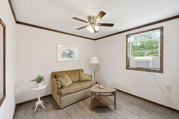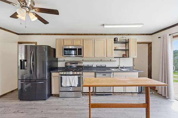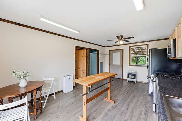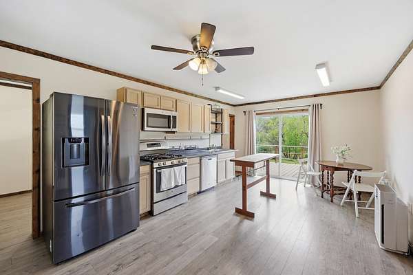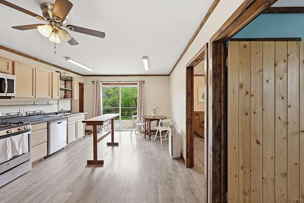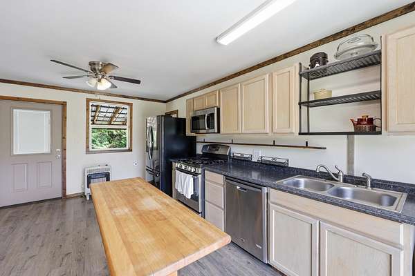 Off the grid meets convenience! This beautiful 8 acre mini farm is secluded, yet is located only minutes from downtown Irvine. This property offers a cozy, one level home with 3 bedroom options, 1 full bathroom, a large eat-in kitchen, stainless steel appliances, and new luxury vinyl plank flooring throughout. All appliances, including the washer and dryer, convey with the home! Located off of the kitchen is an oversized back deck that overlooks a gorgeous view of your pond, making it the perfect spot for your morning coffee. Enjoy the sounds of nature from the comfort of your covered front porch. The property also features a small barn with that has an additional kitchenette and enough room for an additional living space or to be used for storage. This property features two road accesses for added convenience. Do not miss out on this versatile property with so much to offer!