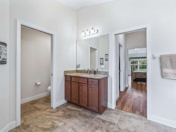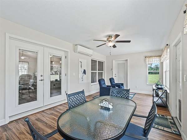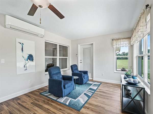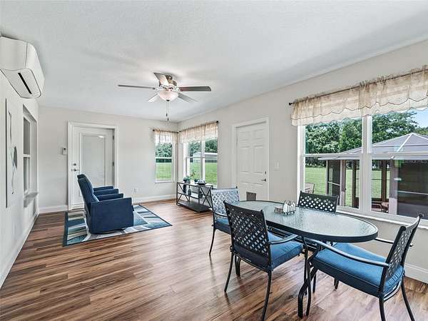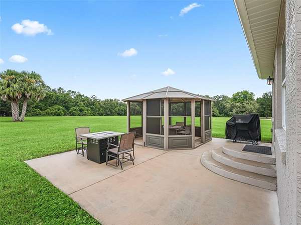 The climate-controlled Florida room with luxury vinyl flooring overlooks the expansive acreage and opens onto a concrete patio--ideal for outdoor gatherings. A charming enclosed gazebo completes the inviting backyard space.